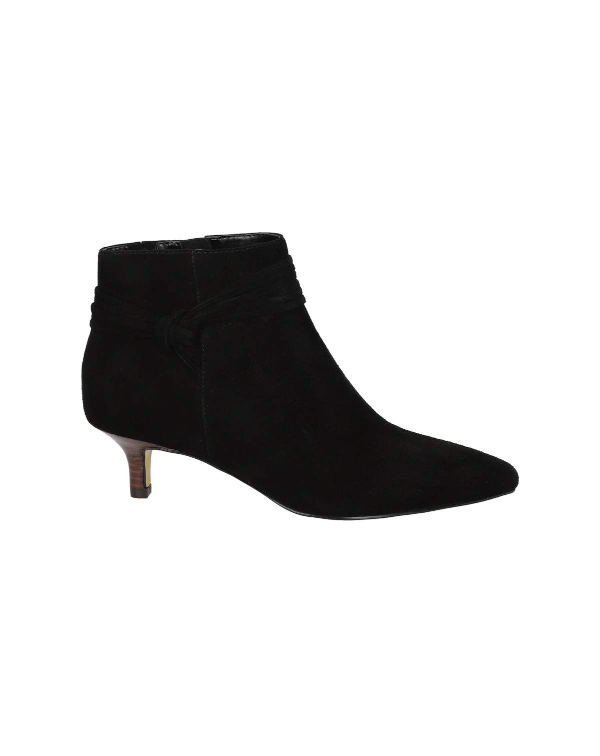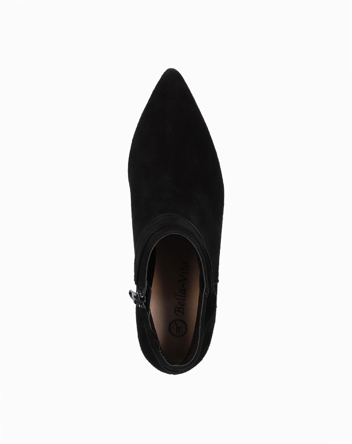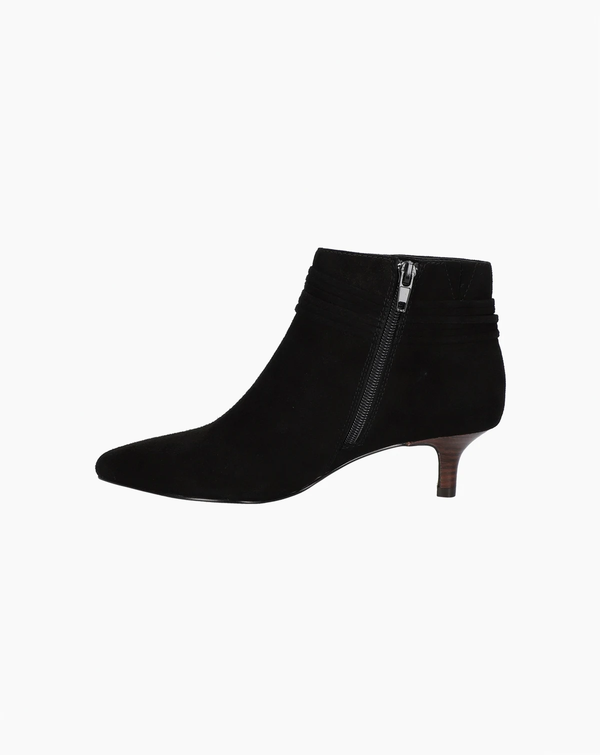 Add a timeless leather dress bootie to your wardrobe with the Jani by Bella Vita. The on-trend low kitten heel to toe and padded insole make this style comfortable for all-day wear. A feminine unique overlay design and contemporary pointed-toe construction will sophisticate any outfit.