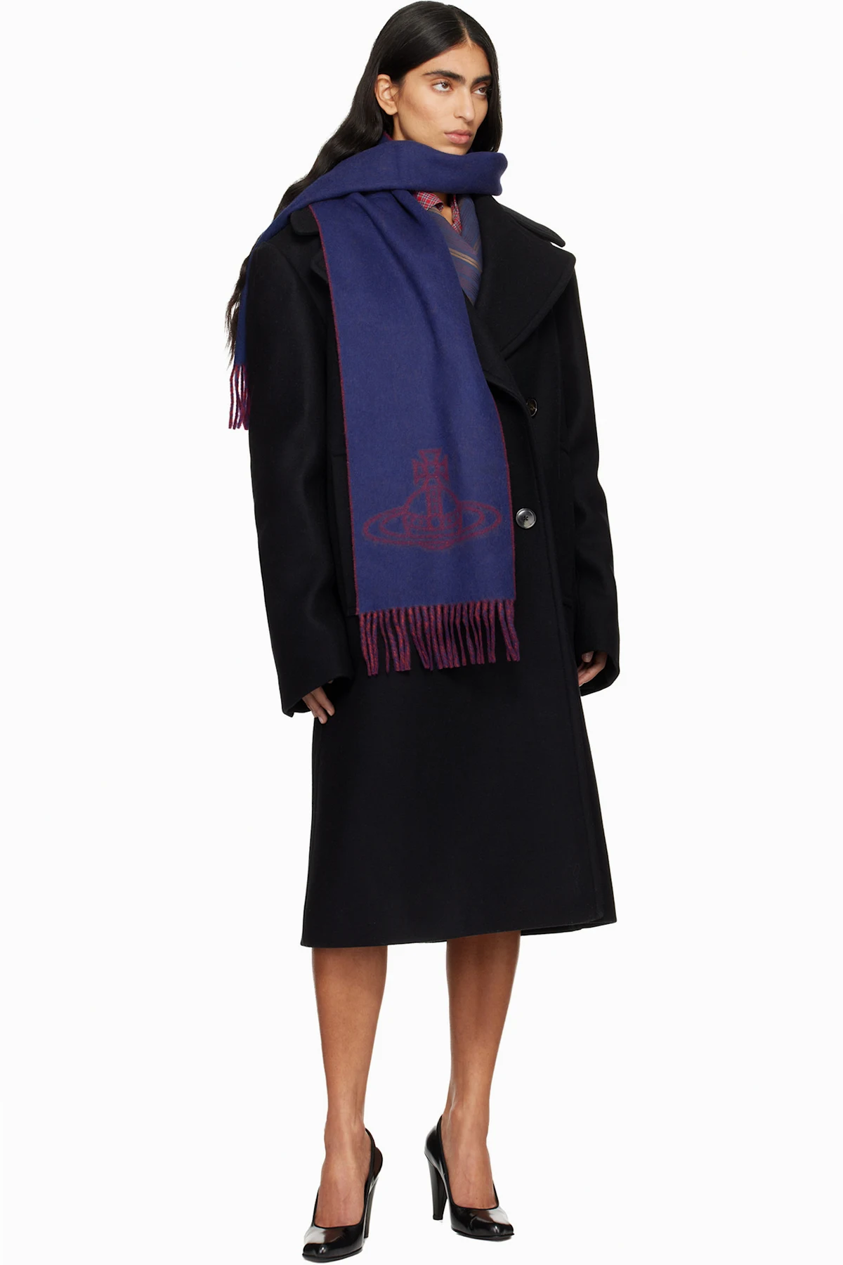 Navy & Red Single Orb Double Scarf