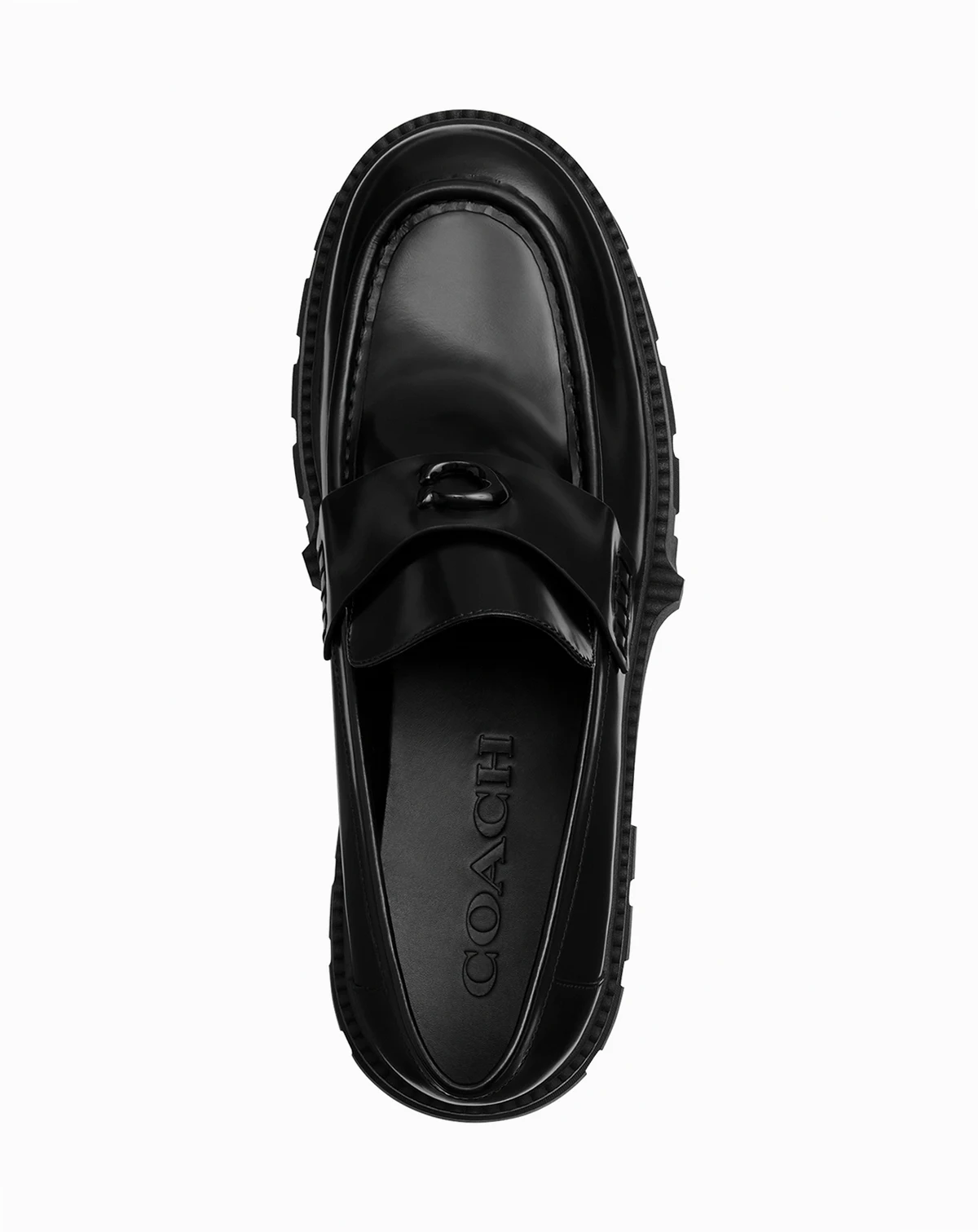 Elevate your casual style with these platform loafers from COACH, crafted from patent leather for a sleek, polished appearance. The slip-on design and man-made leather lining offer easy, comfortable wear.