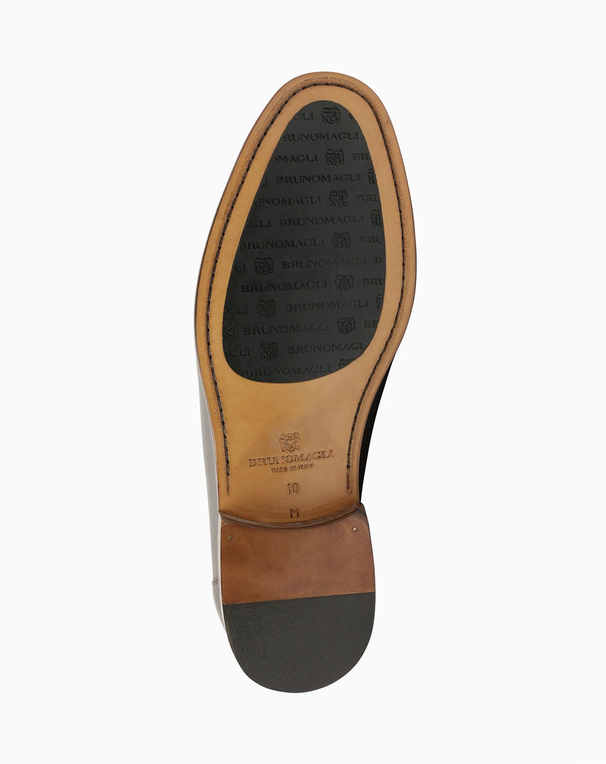 Trieste is a classic horse bit loafer moccasin on a combination leather, rubber outsole.