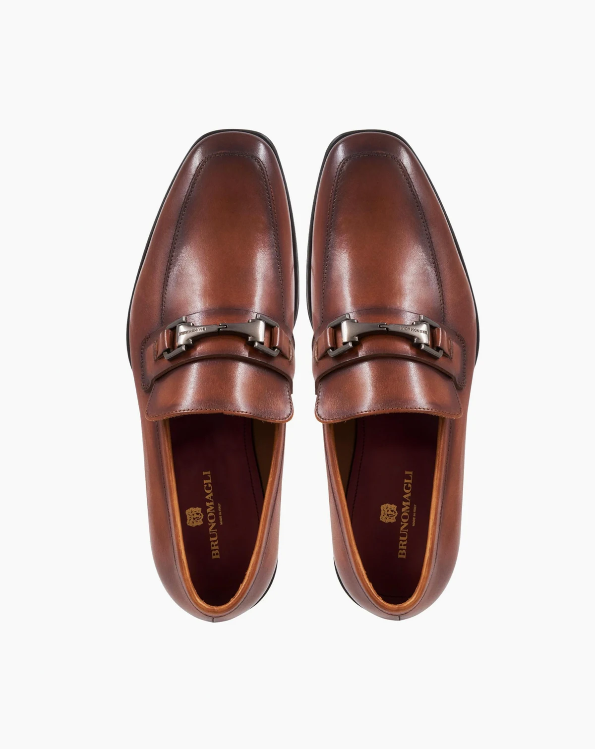 Based on our best-selling Raging platform, this loafer boasts a double-stitched upper in luxurious brushed calf leather, elevating its sophistication. Adorned with our signature Bruno Magli bit, it adds a distinctive touch of elegance and style, making it our best-selling choice for discerning individuals seeking refined footwear.