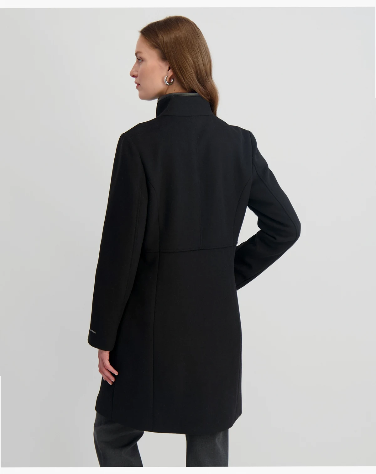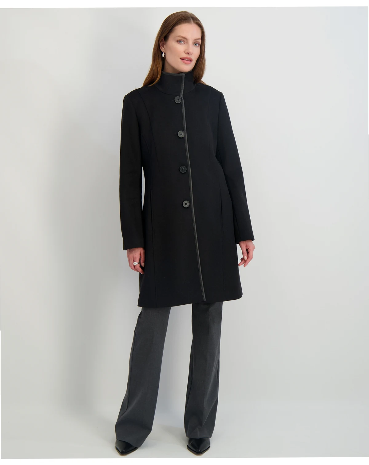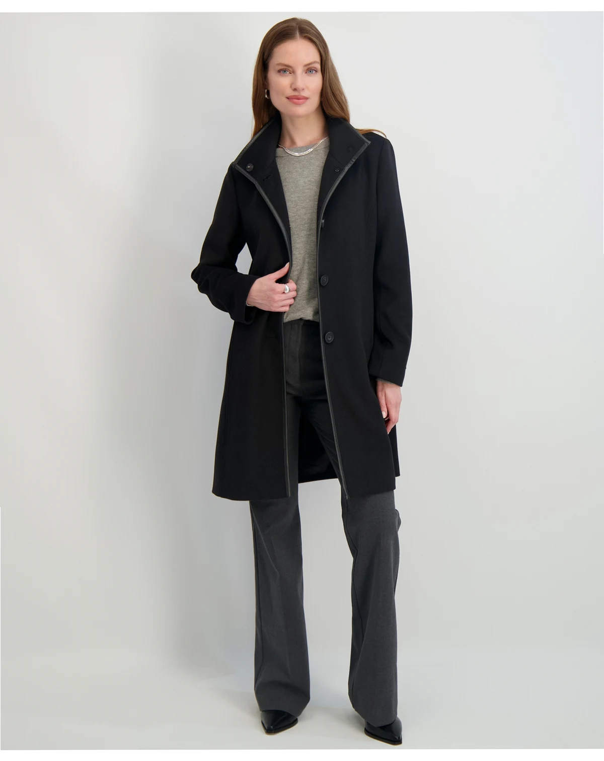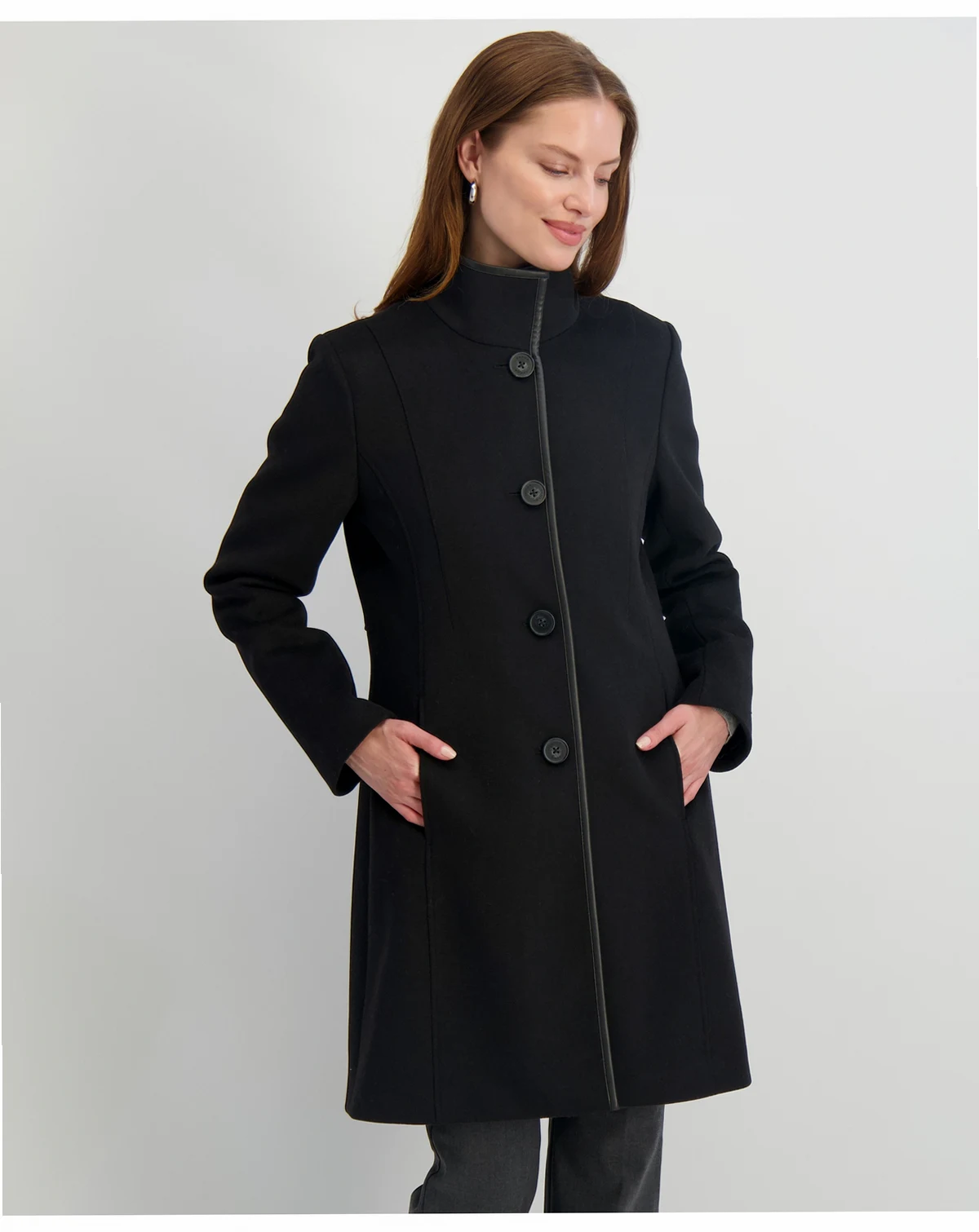 Tahari hits all the cozy style marks with this single-breasted coat designed with a sleek stand collar and two side pockets.