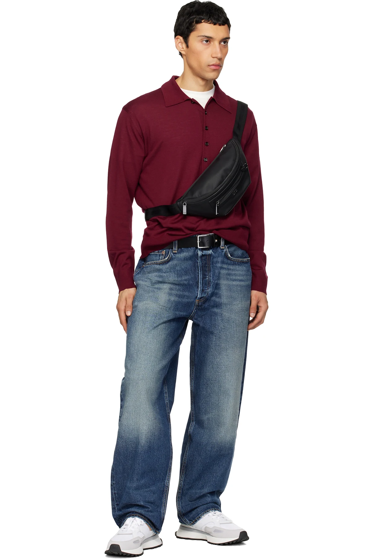 Black Italian-Leather Signature-Stripe Keeper Belt