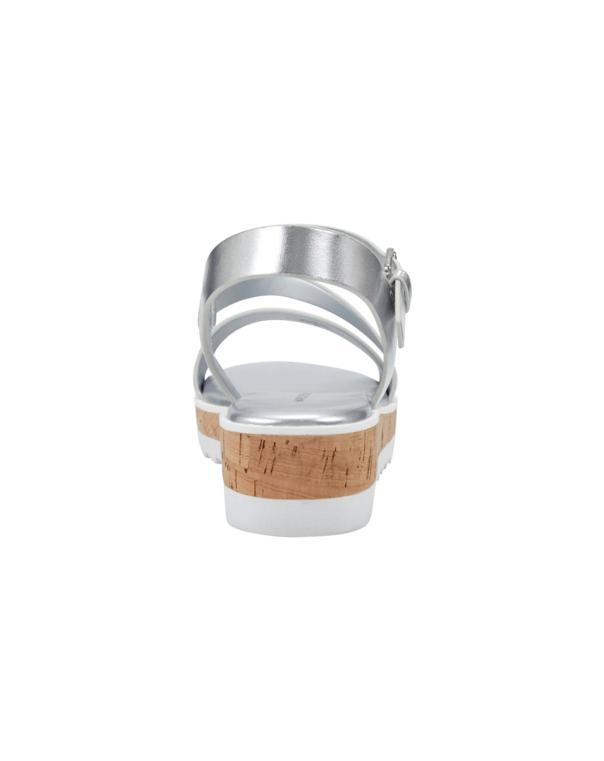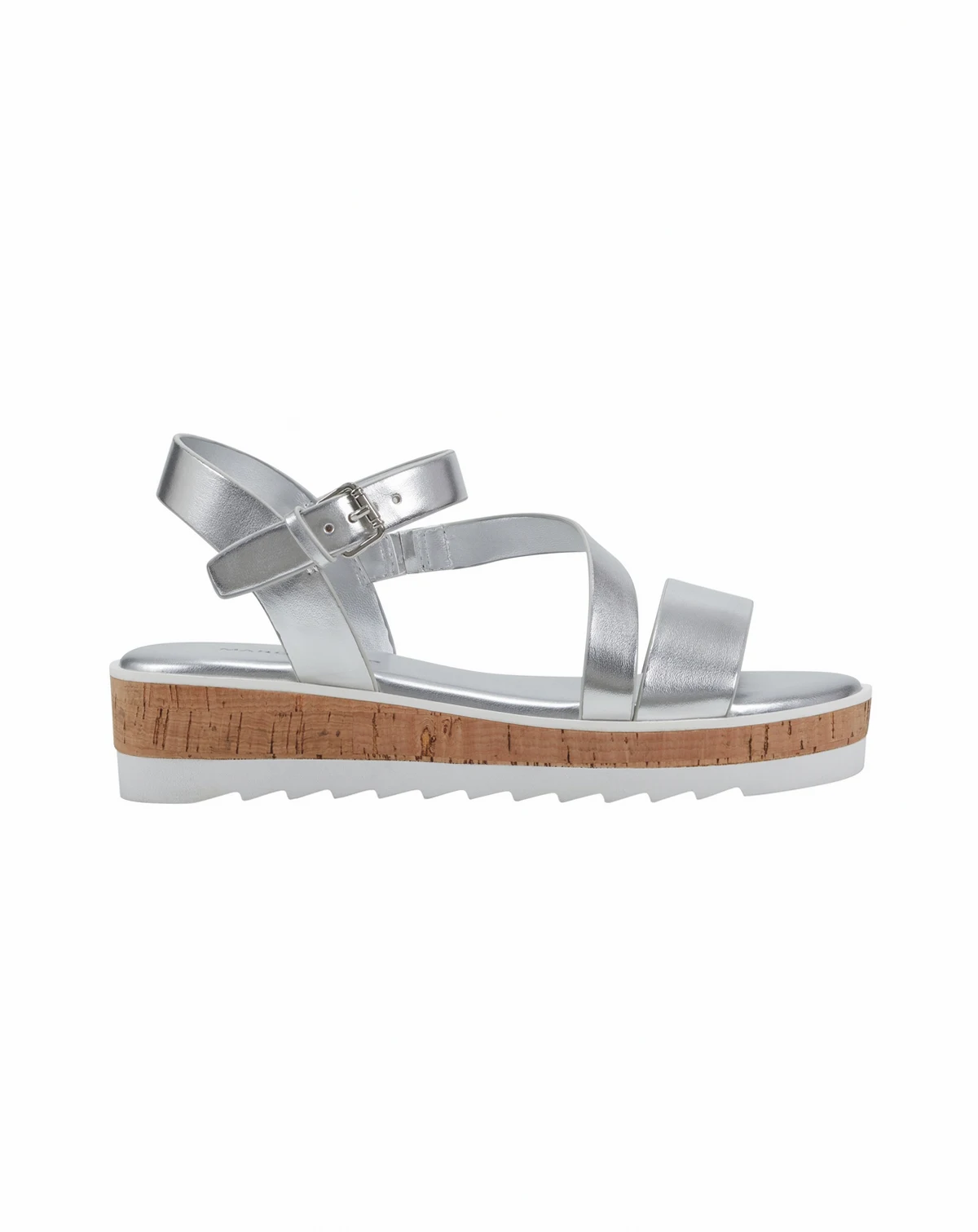 Give your look a sporty-chic lift: Marc Fisher's Grandie sandals feature a subtle cork-detail platform wedge along with an asymmetrical strap and an adjustable buckle. Designed for the modern woman, Marc Fisher Footwear provides statement shoes for every occasion.