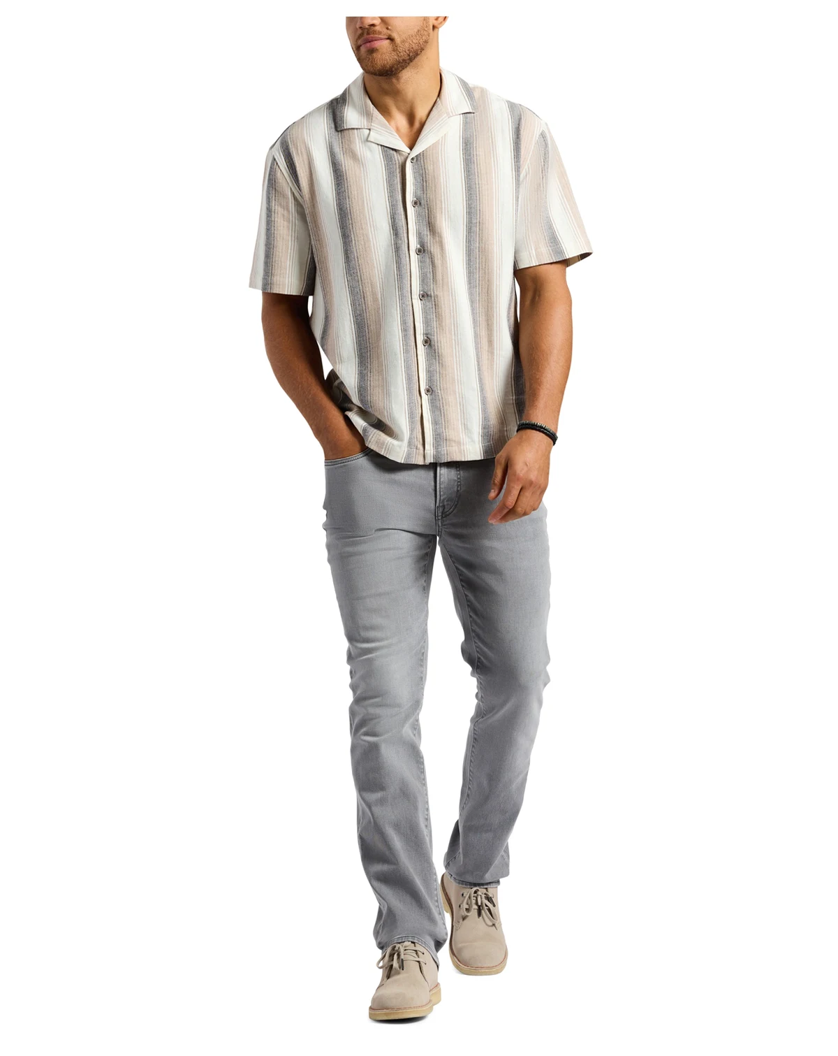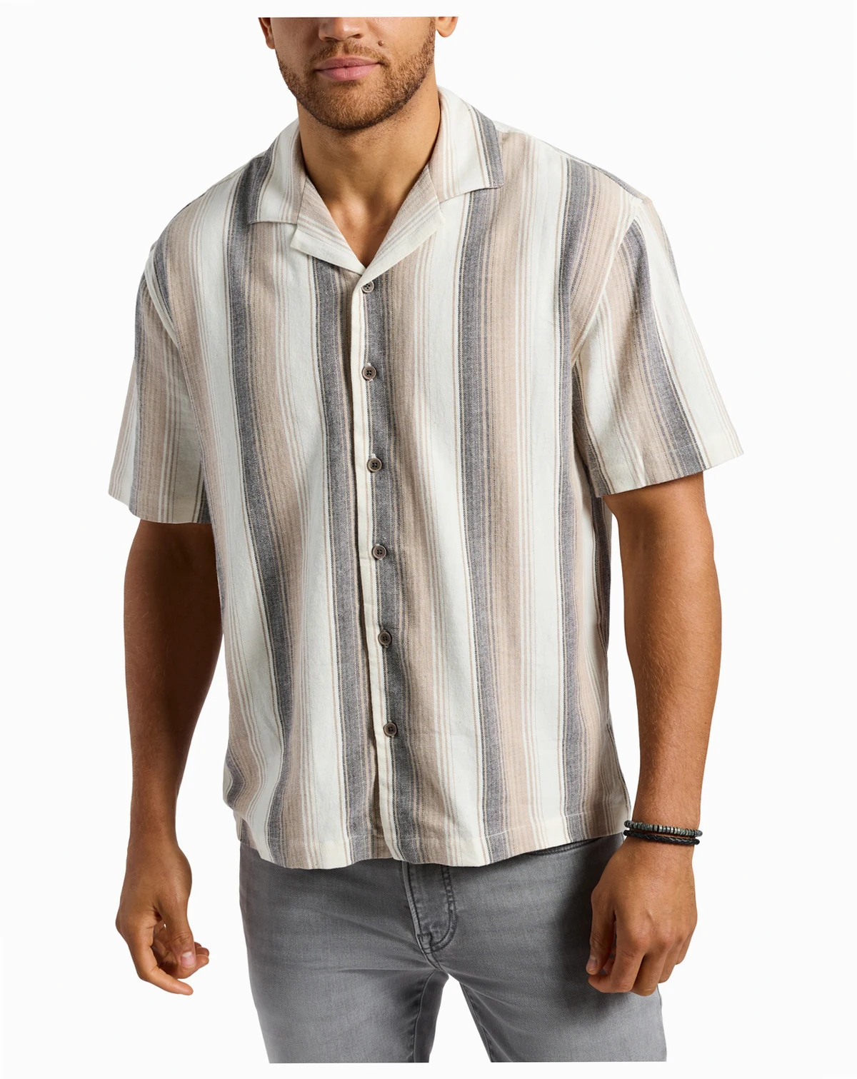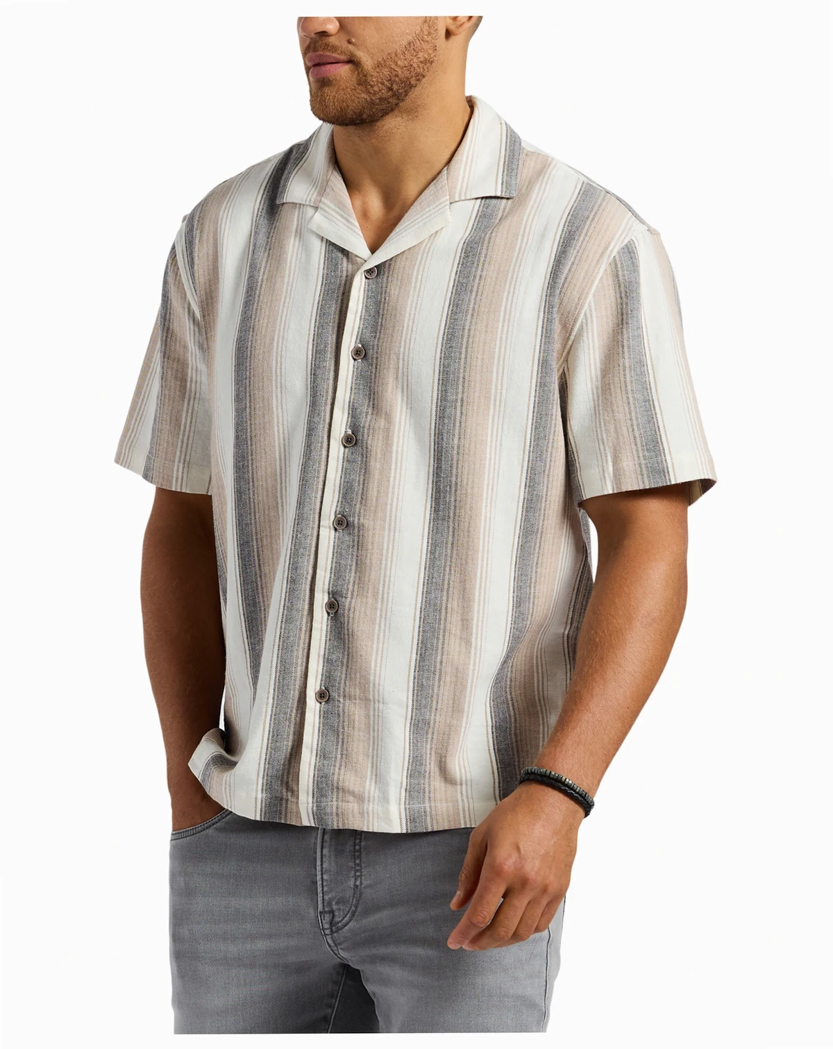 The Salaman men's striped short sleeve button-up shirt offers a perfect blend of comfort and sophistication. Designed with a relaxed open collar and a timeless striped pattern, this shirt is ideal for casual outings or warm-weather occasions. It ensures all-day comfort while maintaining an effortlessly stylish look. Pair it with jeans or chinos for a versatile and polished ensemble.