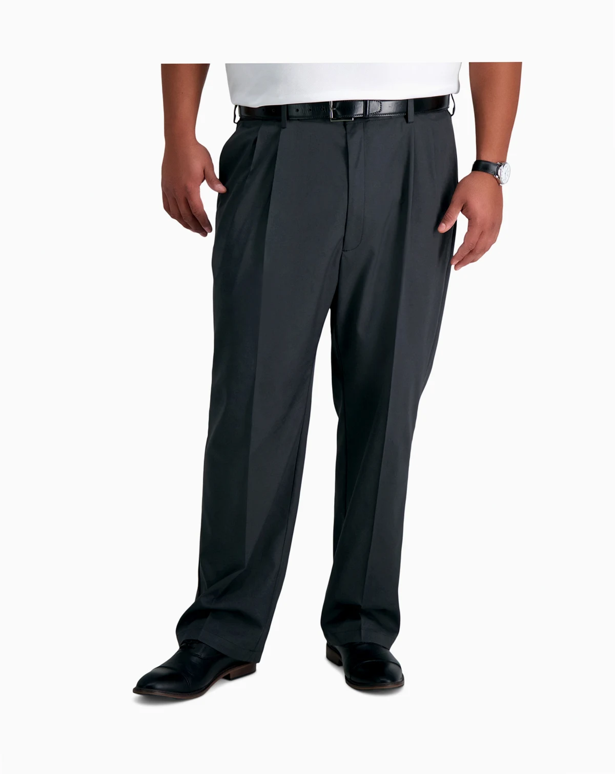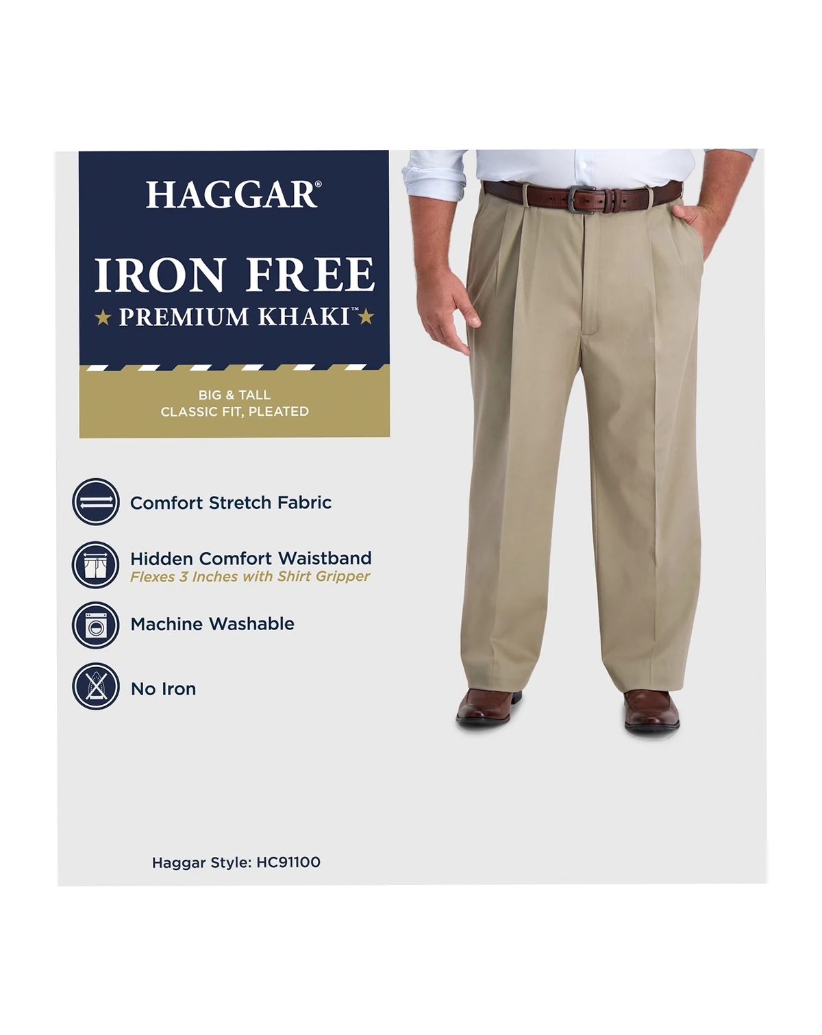 Classic fit pants sit at the waist; relaxed fit through hips and thighs with a straight leg opening; Hidden comfort waistband expands 3"