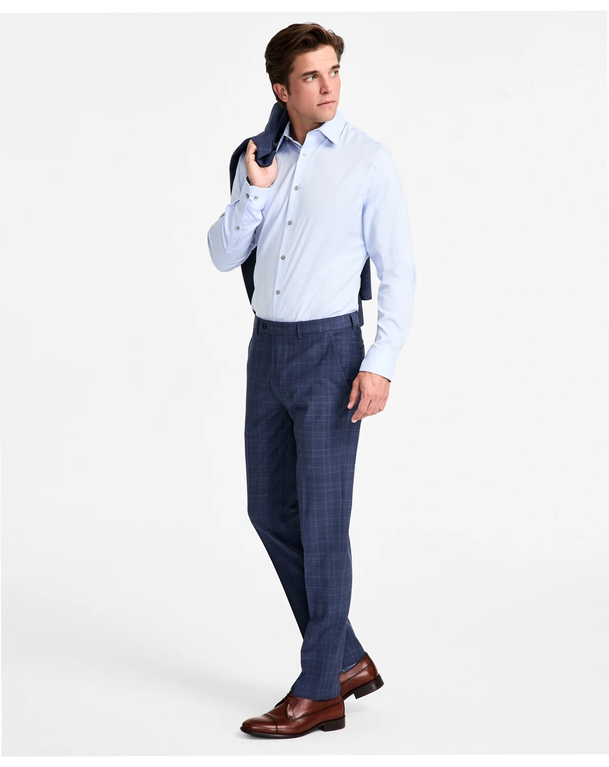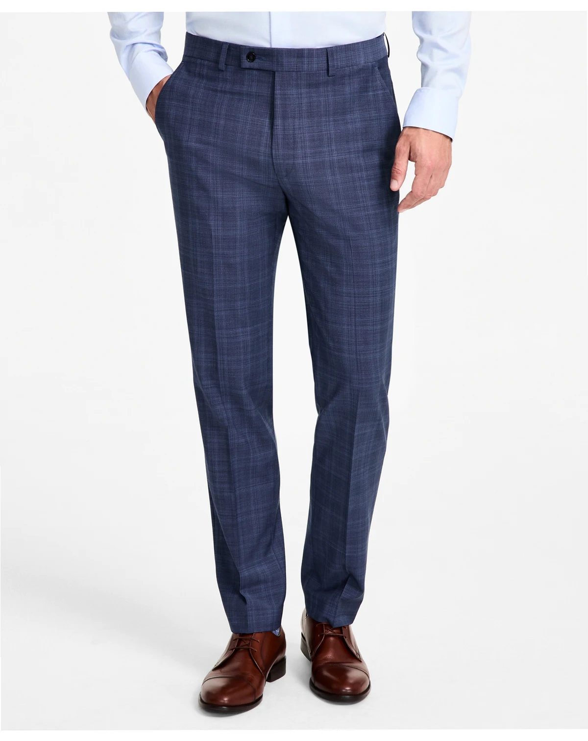 Slim-fit and sleek, these plaid wool-blend suit pants from Calvin Klein are here to help you cut a striking silhouette when it's time for your next formal event.