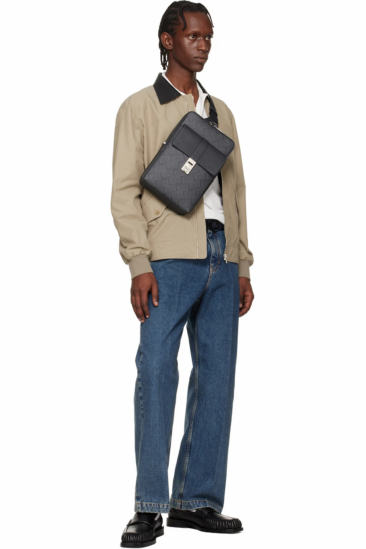 Reverse in black logo-embossed grained calfskin.