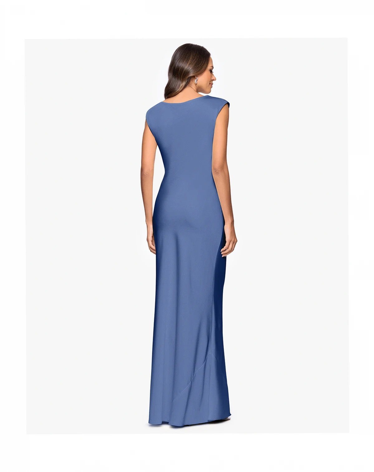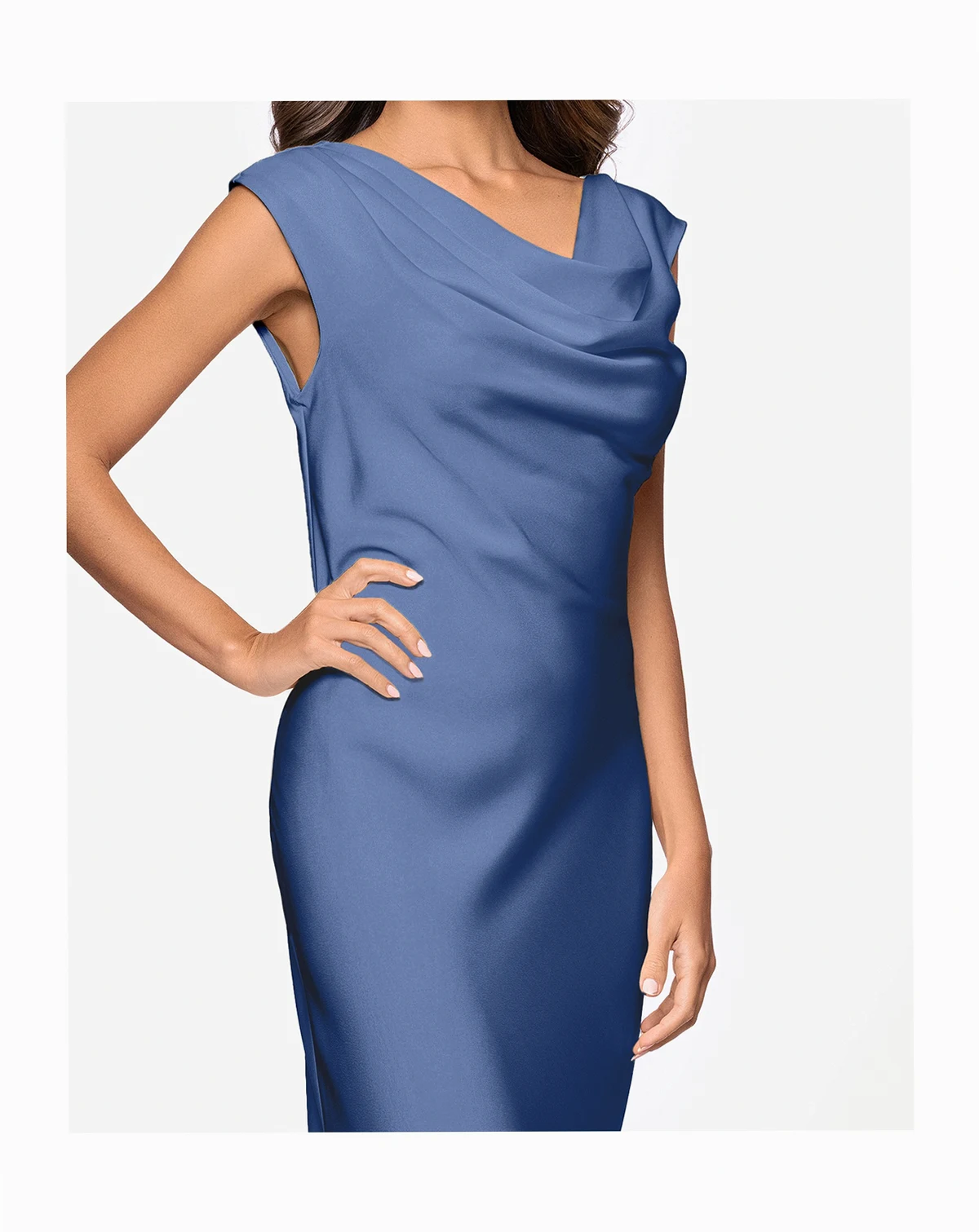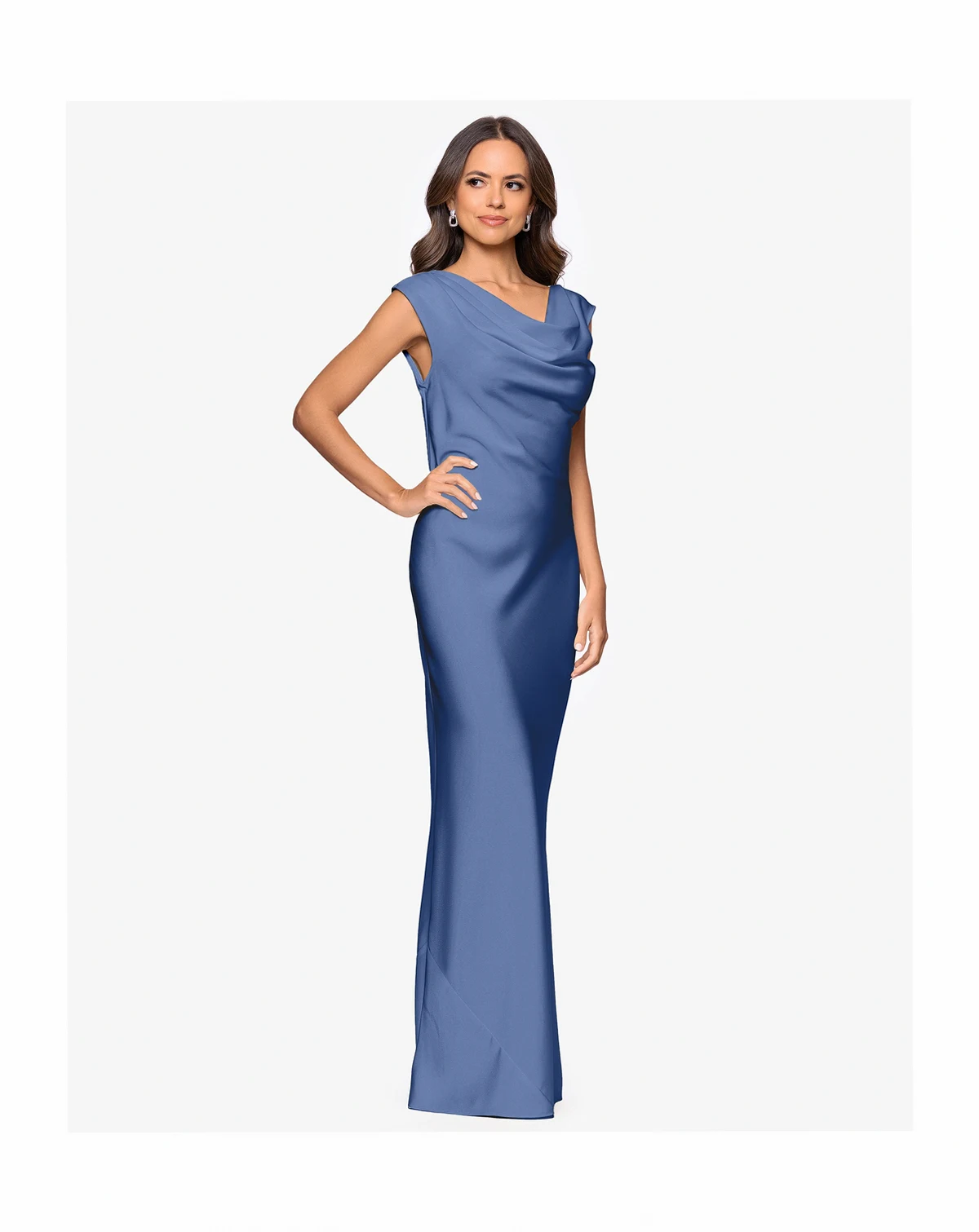 A graceful cowl neckline elevates this Betsy & Adam sheath dress, offering a streamlined silhouette. Lined construction provides comfort and elegance for special events.