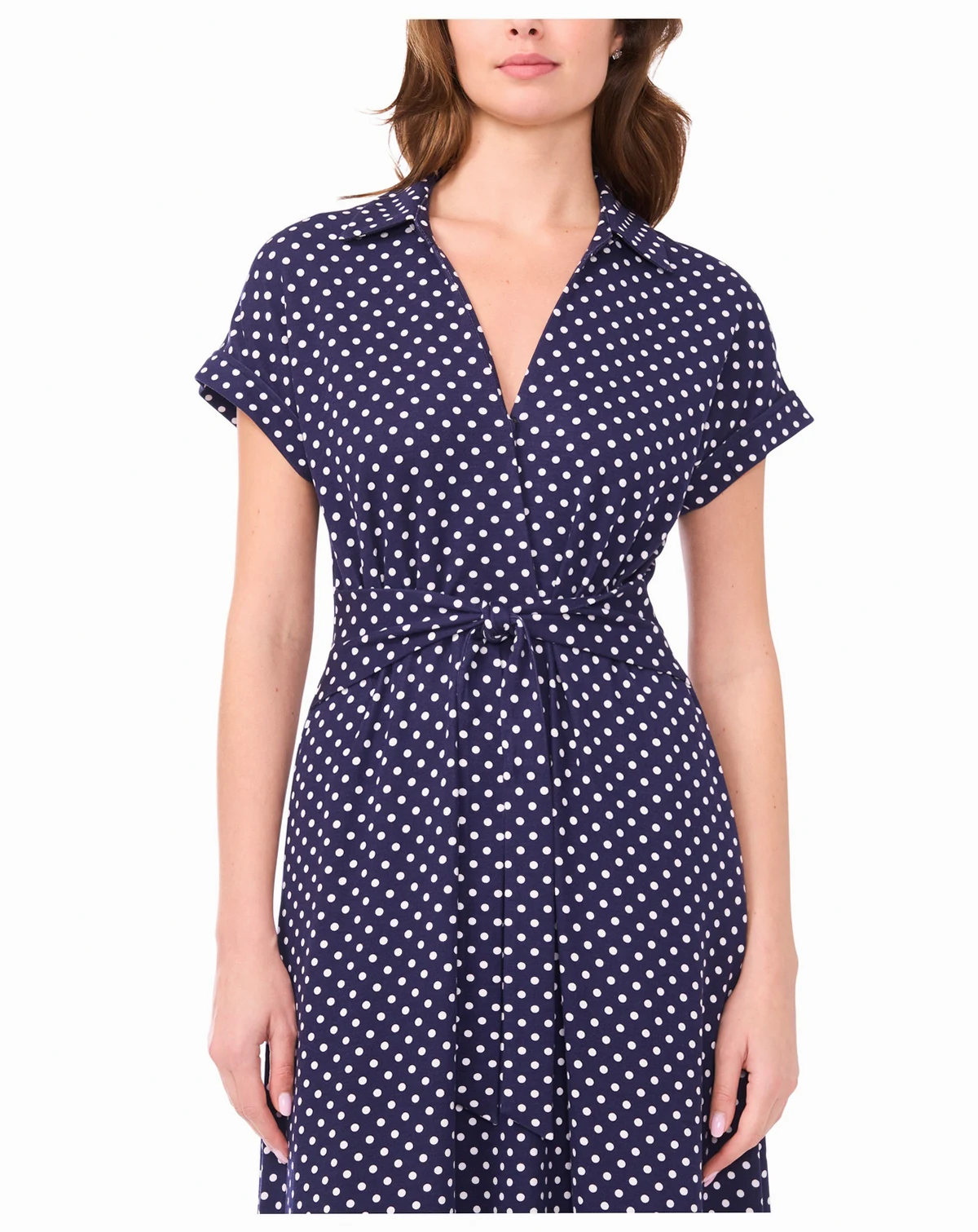 Define your waist with a chic belted silhouette in this midi shirt dress from MSK, featuring a classic collared neckline. The short sleeves add a touch of effortless charm, making it a versatile choice for both casual days and refined occasions.