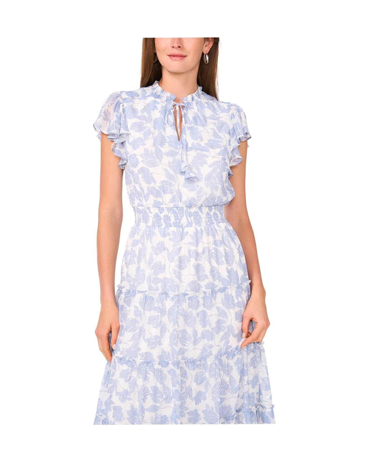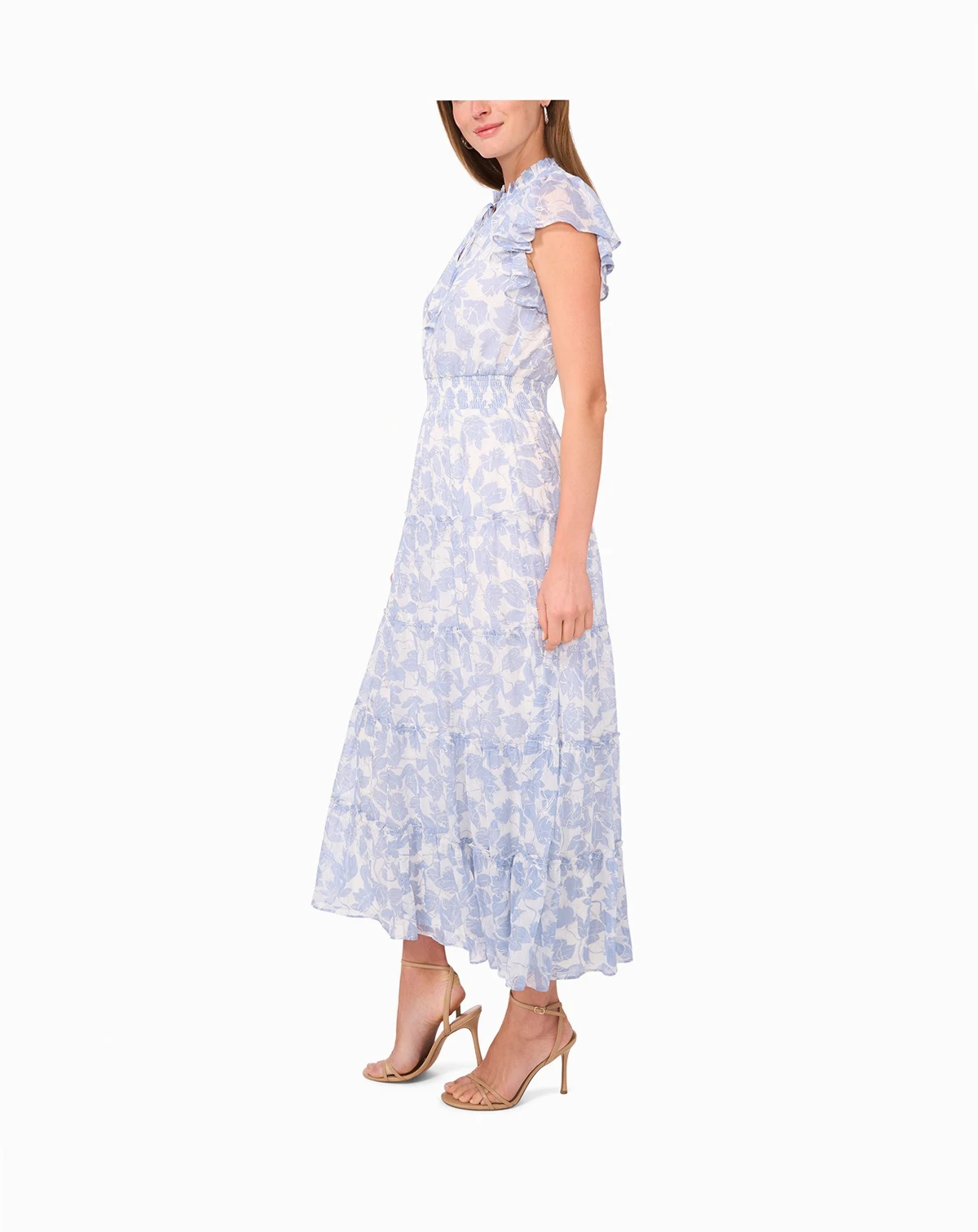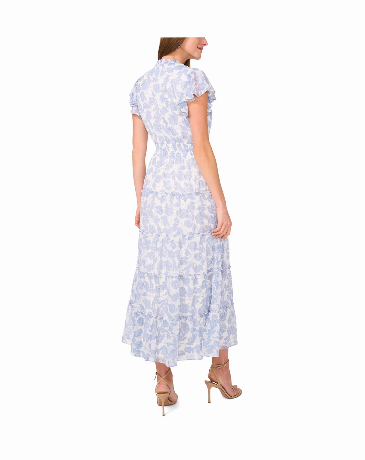 Draping in a tiered maxi silhouette, this chiffon dress from MSK features a split neckline and short sleeves. The graceful, long design is perfect for special celebrations.