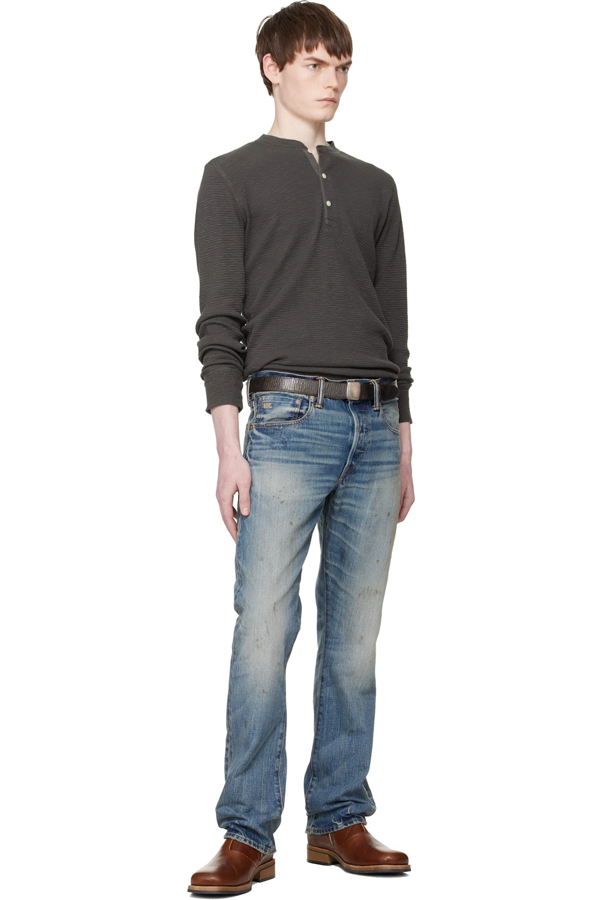 Hand-dyed grained leather belt.