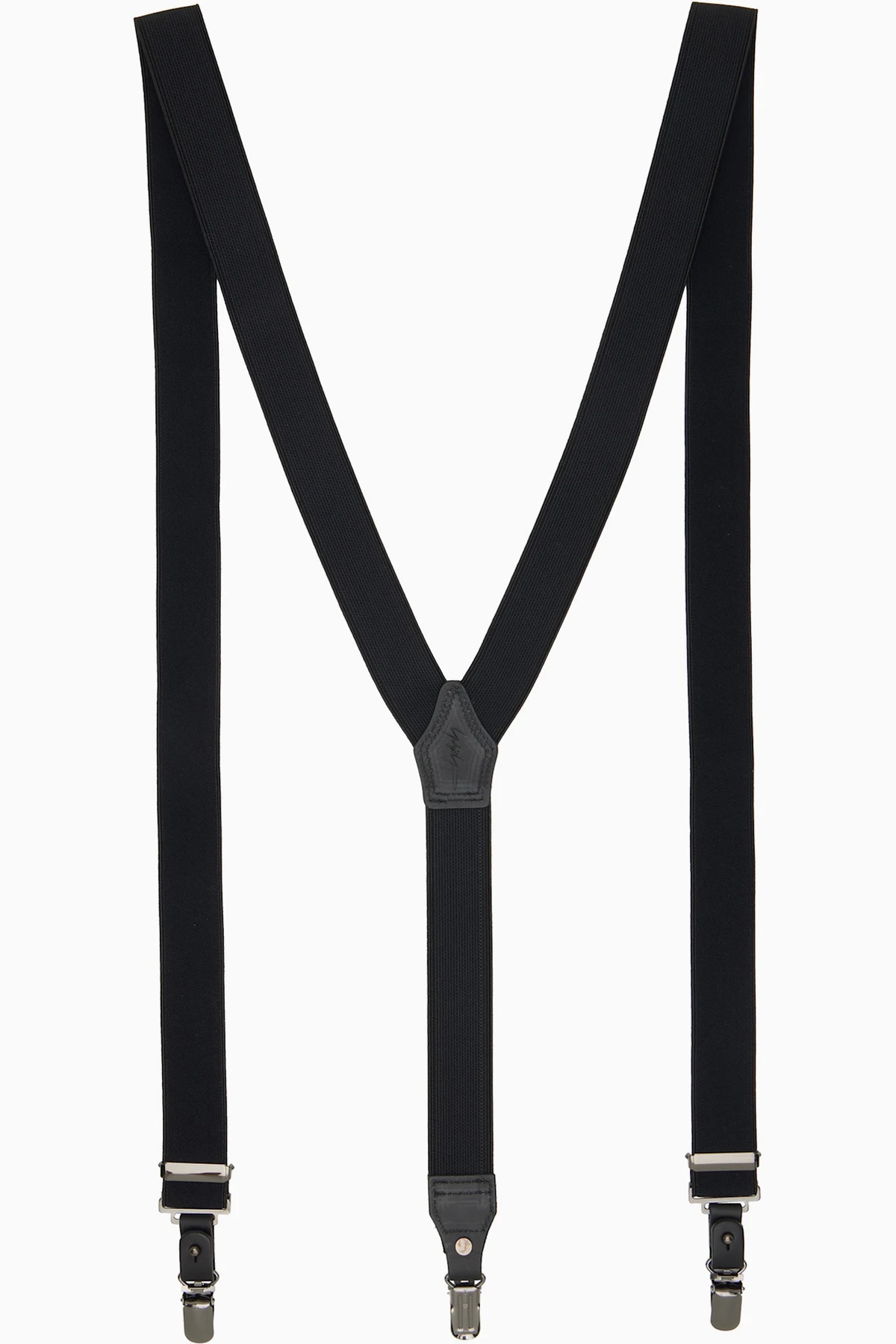 Elasticized nylon-blend webbing suspenders.