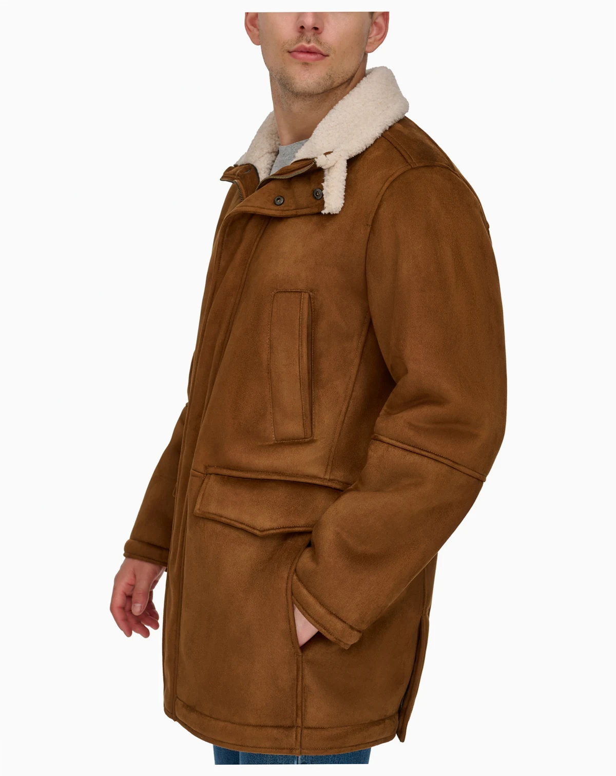 Warm and cozy meets functional fashion with Dockers long faux-shearling coat. It's luxurious feel and classic styling will keep you reaching back for it time and time again in wintry weather.