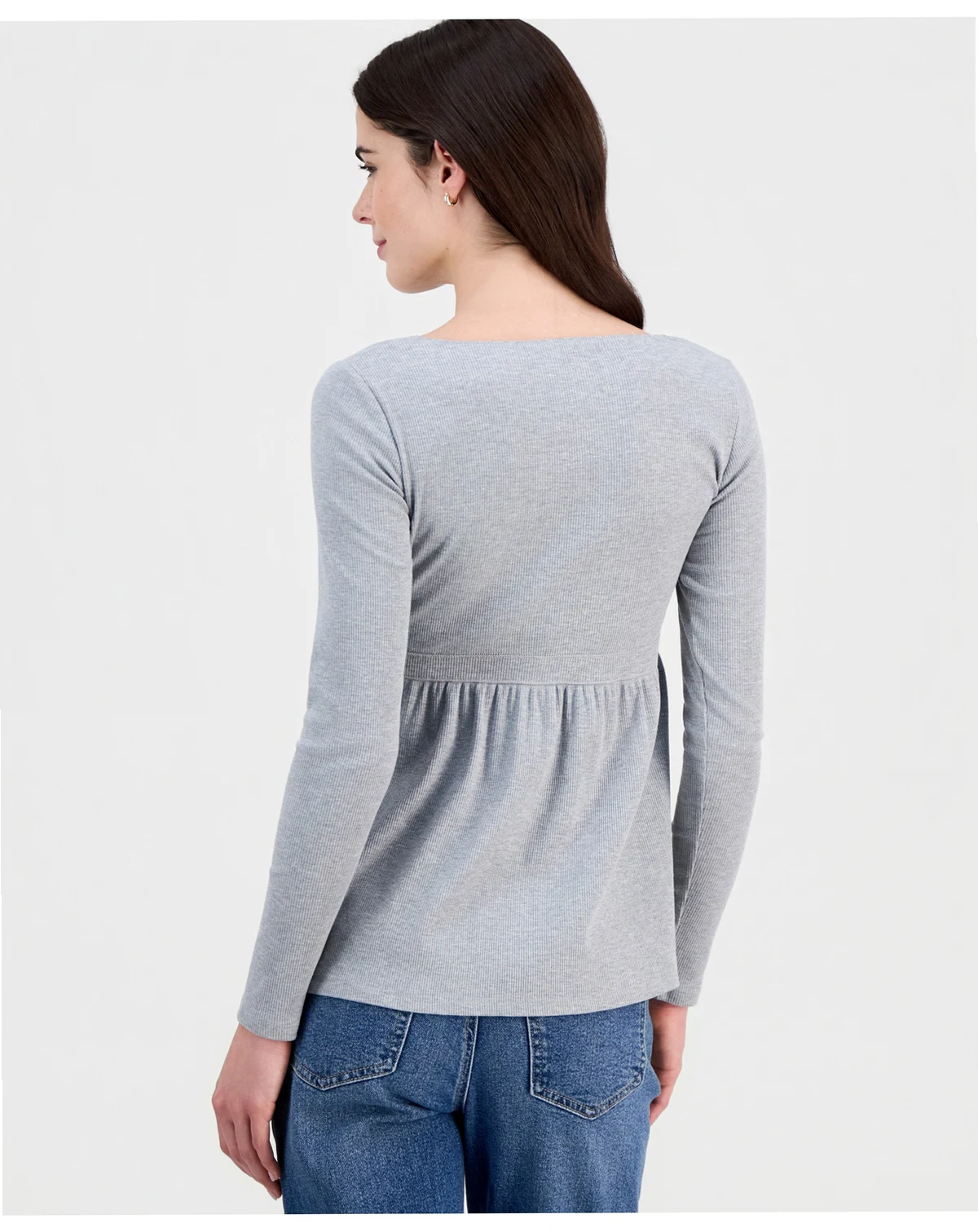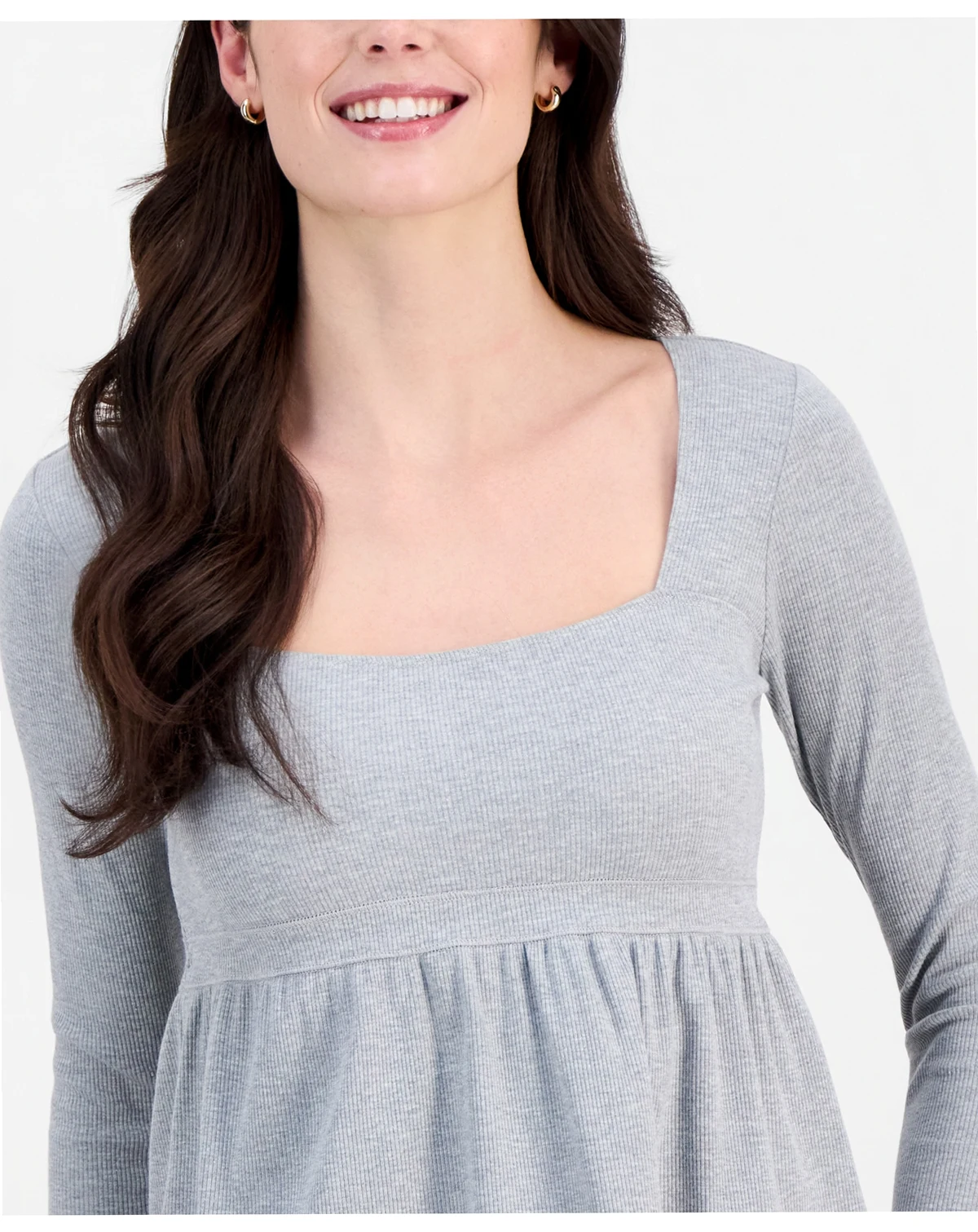 Juniors' Long Sleeve Ribbed Babydoll Top
