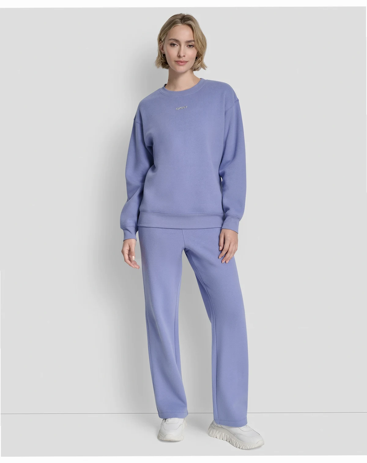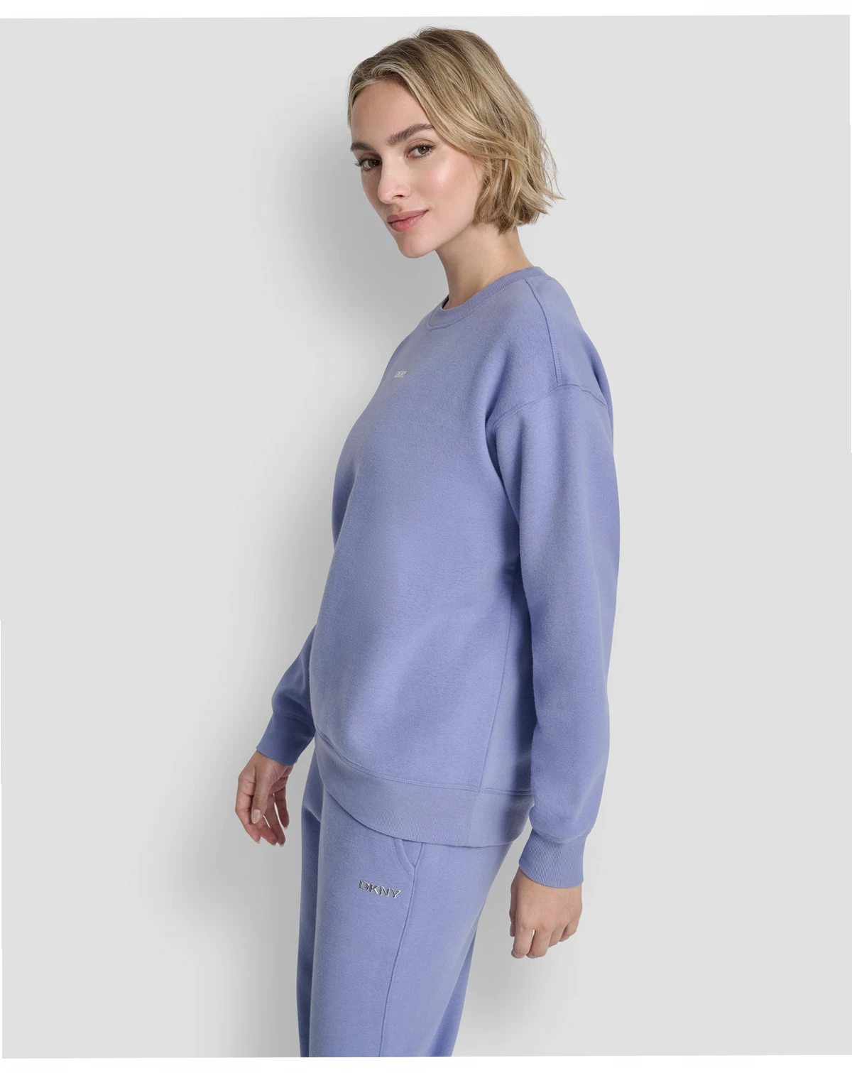 Show off a metallic bubble logo on this long line crew neck sweatshirt from DKNY Sport, designed for everyday wear. Long sleeves and a regular fit provide a comfortable and stylish option for casual activities.