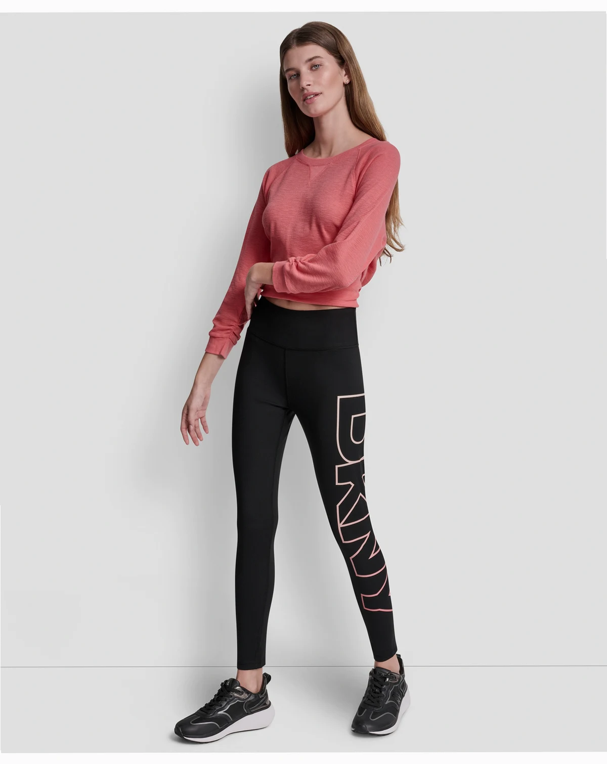 Dynamic style meets comfort in these DKNY Sport tights, designed with an exploded ombre logo for standout appeal. A high-waist silhouette offers balanced compression, while the 7/8 length ensures versatile wear.
