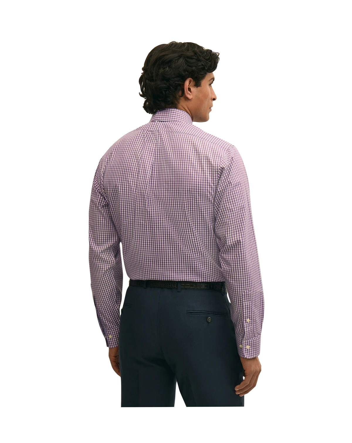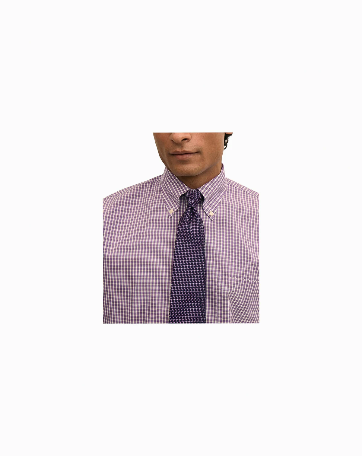 Experience next-level polish with this Brooks Brothers dress shirt featuring a button-down collar and signature 6-Pleat Shirring® at the barrel cuffs. Pinpoint construction, a chest pocket, and pucker-free seams deliver refined, wrinkle-resistant sophistication.