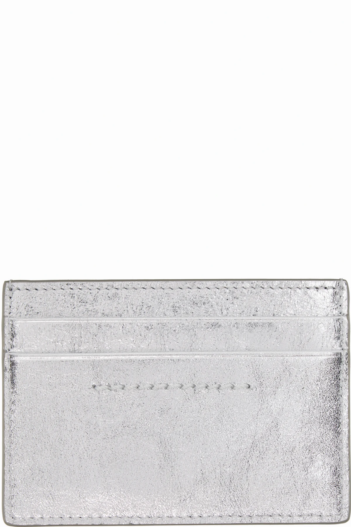 Grained metallic calfskin card holder.