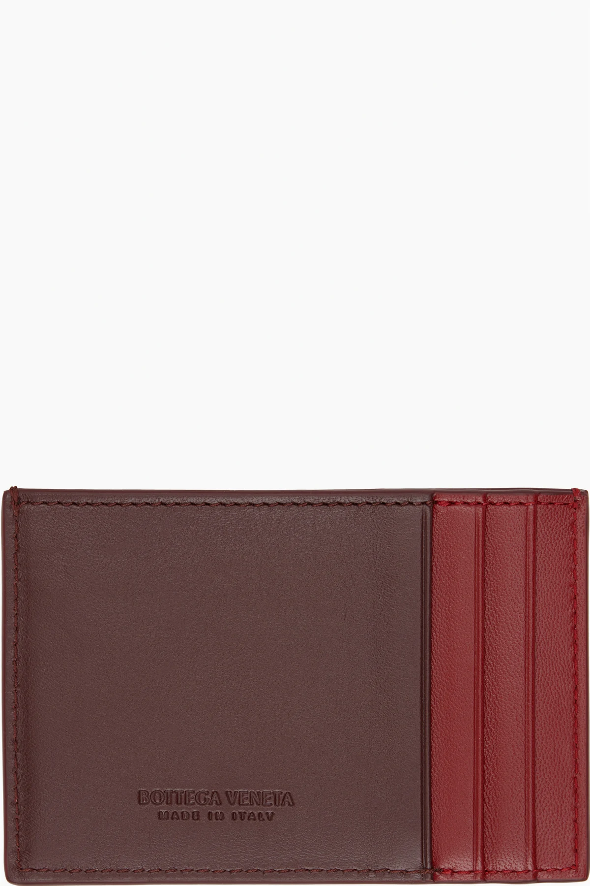 Intreccio-woven nappa lambskin card holder in burgundy.