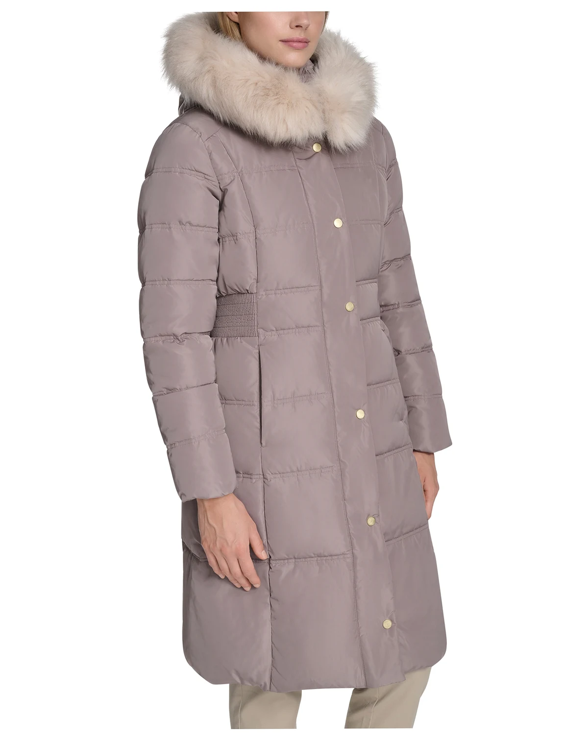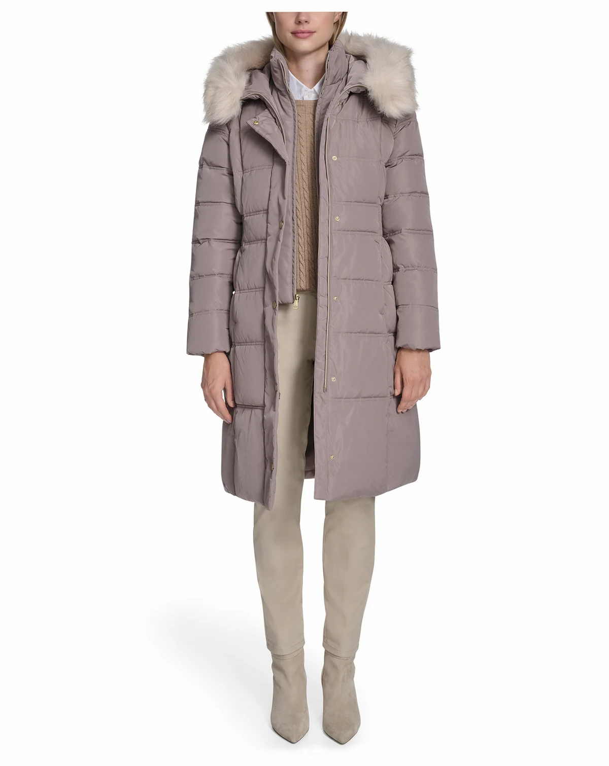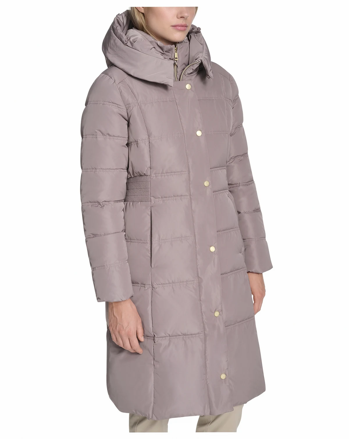 Stay shielded in chilly weather with this Cole Haan hooded zip-front puffer coat, featuring a bibbed design and collar that help block cold air and keep you protected wherever you go, while two on-seam zipper pockets secure your valuables with ease.