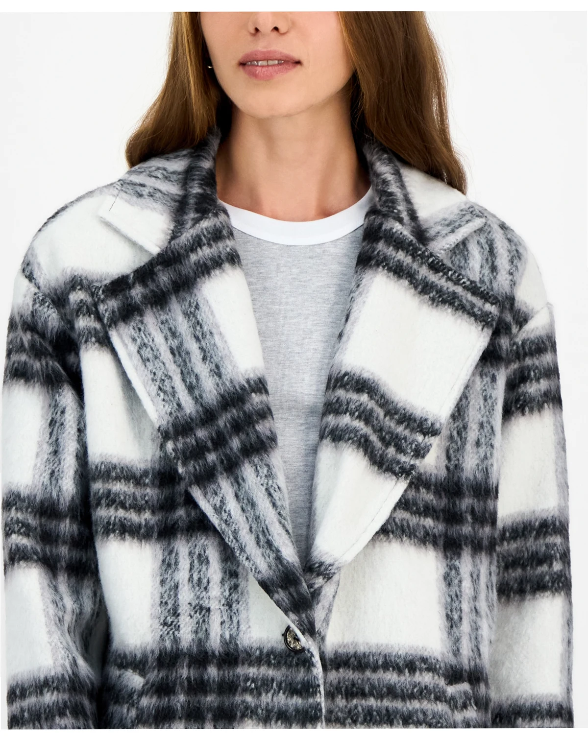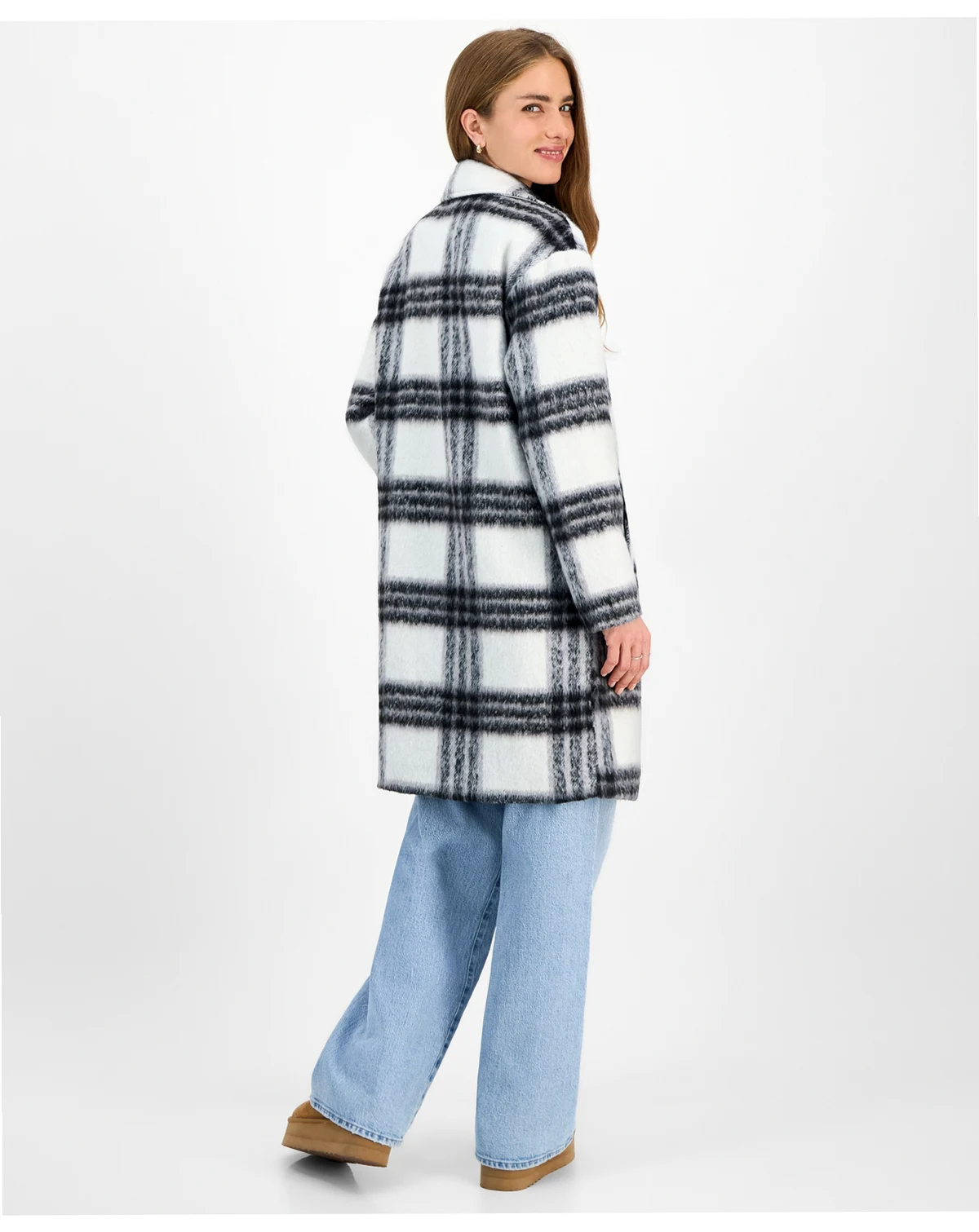 Juniors' Button-Front Plaid Coat