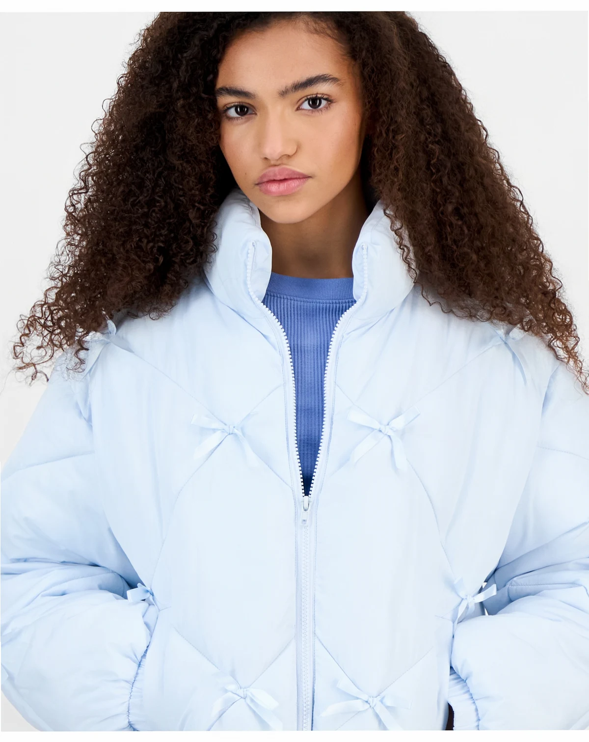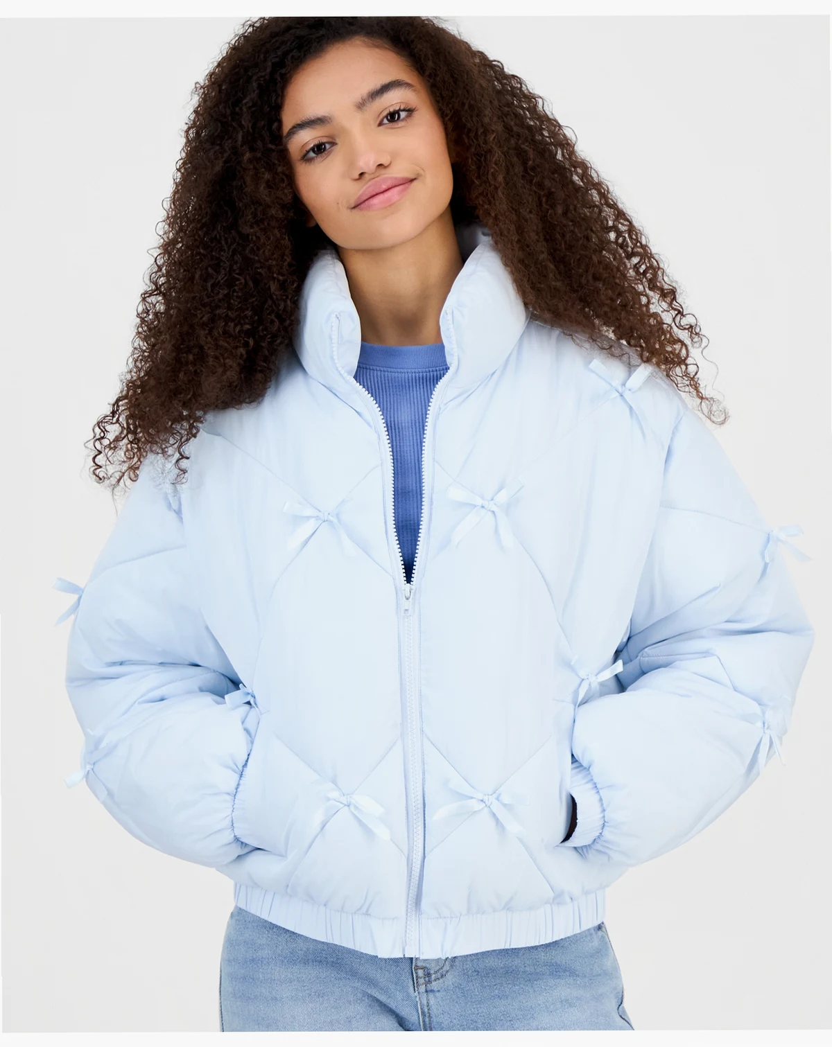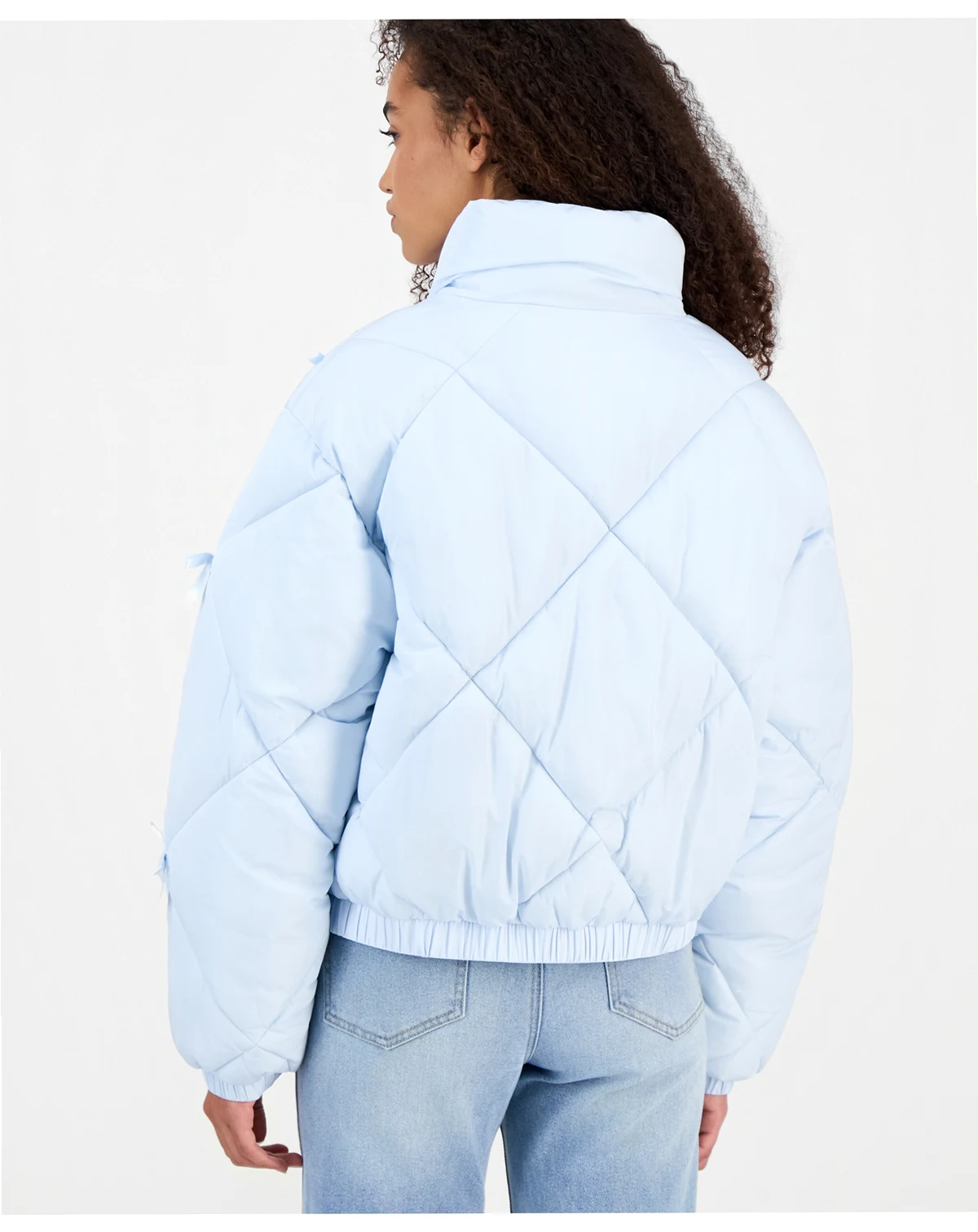 Juniors' Diamond Quilted Bow Puffer Jacket
