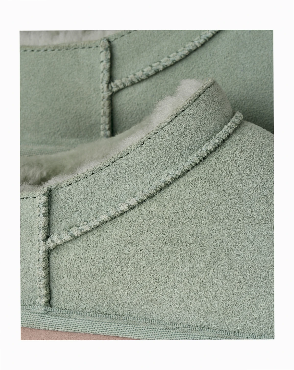 Primary upper: suede; lining: fur; insole: sheepskin; outsole: sugarcane EVA; textile: 100% polyester