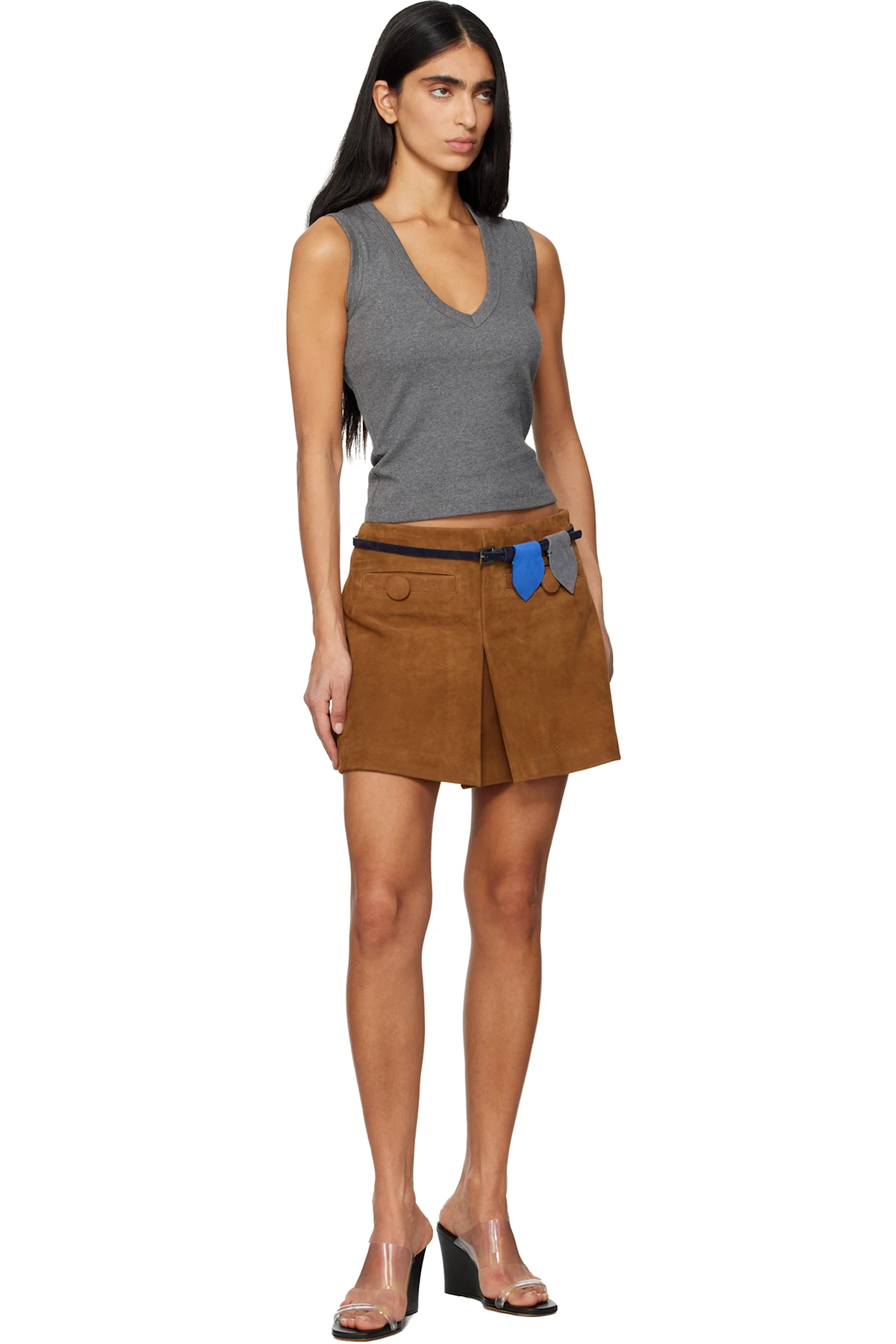 Calfskin suede belt.
