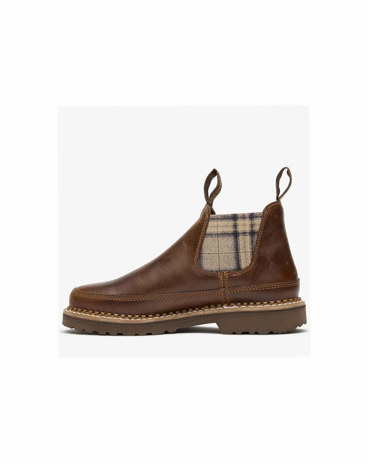 This limited edition Chelsea style romeo boot is perfect addition to your wardrobe!The brown chelsea features a full-grain leather upper with brown and tan plaid twin gore panels and nylon pull loops for an easy on. The interior has a removable AMP X-Lite memory foam insole for cushioning comfort.The polyurethane outsole is oil and slip-resistant and includes a steel shank for added support. The notched welt construction on this women's Chelsea boot provides a durable foundation..