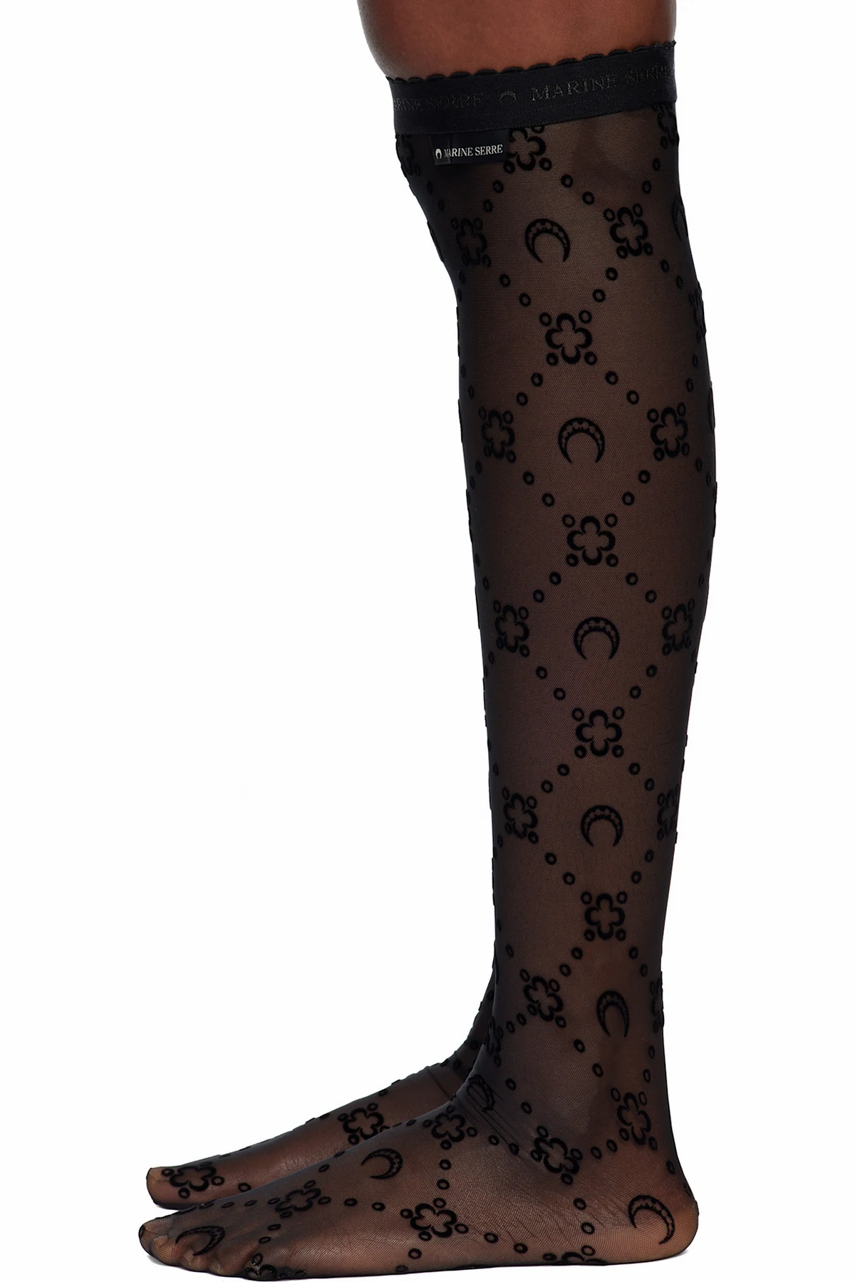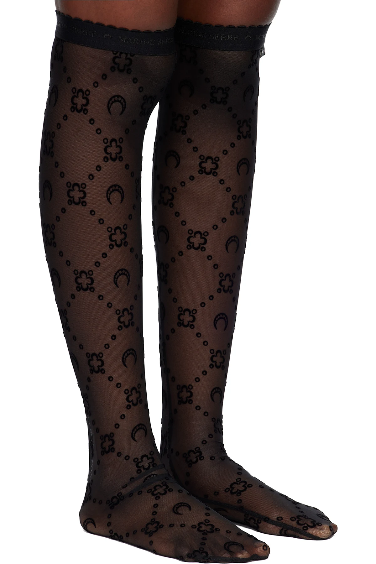 Pair of knee-high sheer stretch recycled nylon mesh socks.