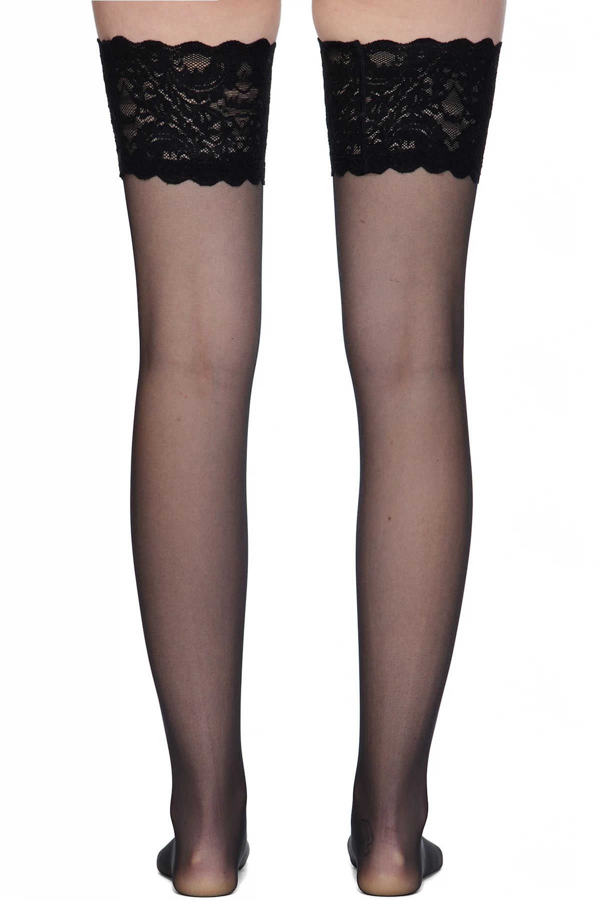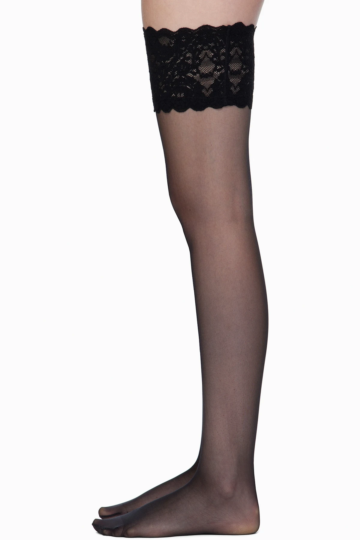Pair of thigh-high semi-sheer stretch nylon jersey socks.
