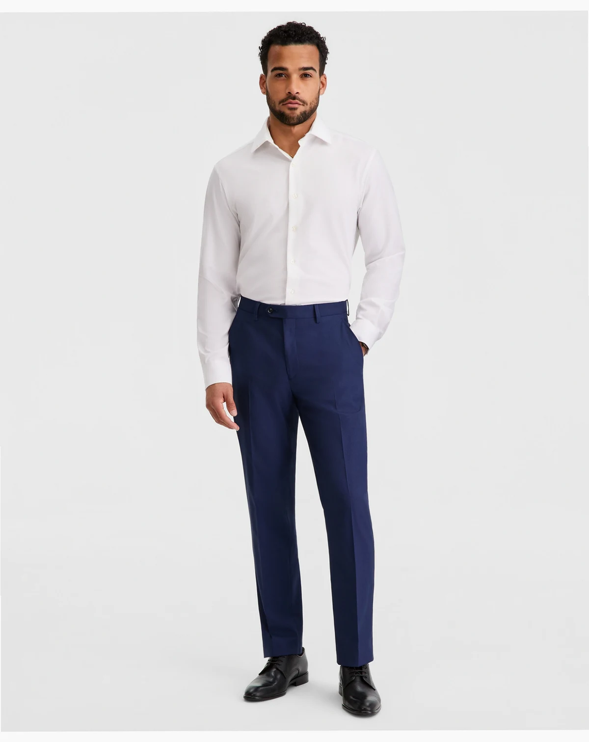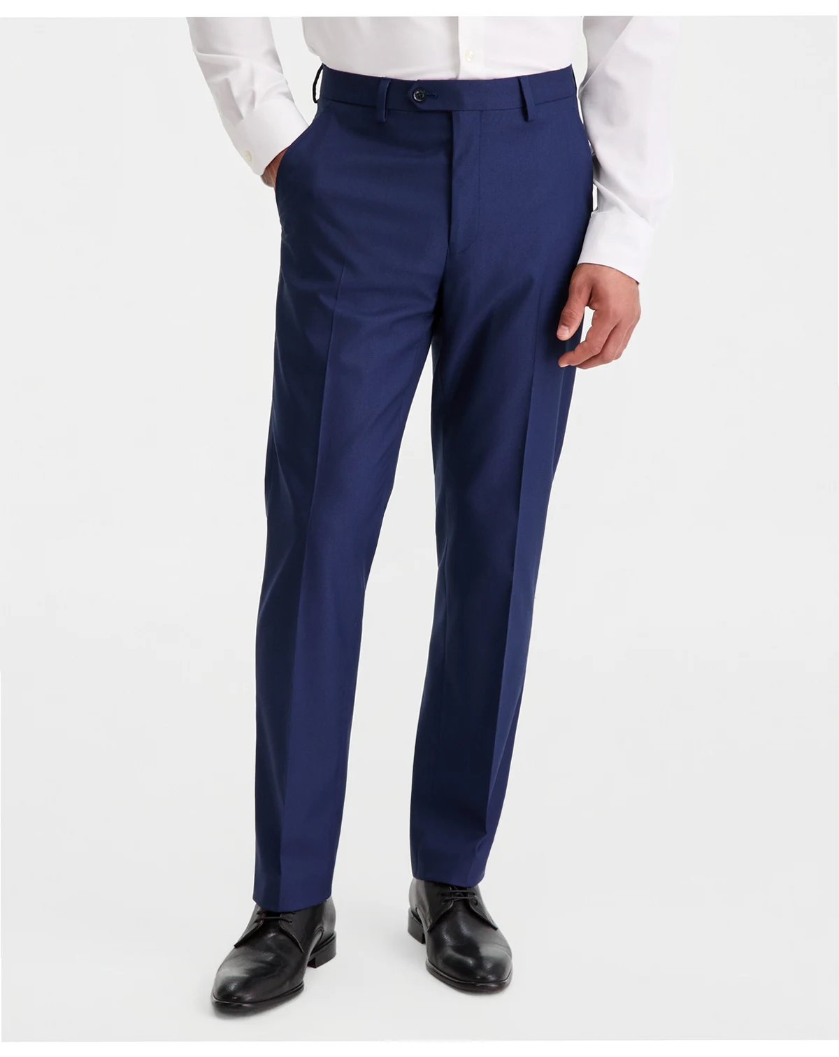 Bring a whole new dimension of style and comfort to work or the weekend with the streamlined tailoring and unrestrictive stretch performance of these versatile navy blue suit pants from Alfani.