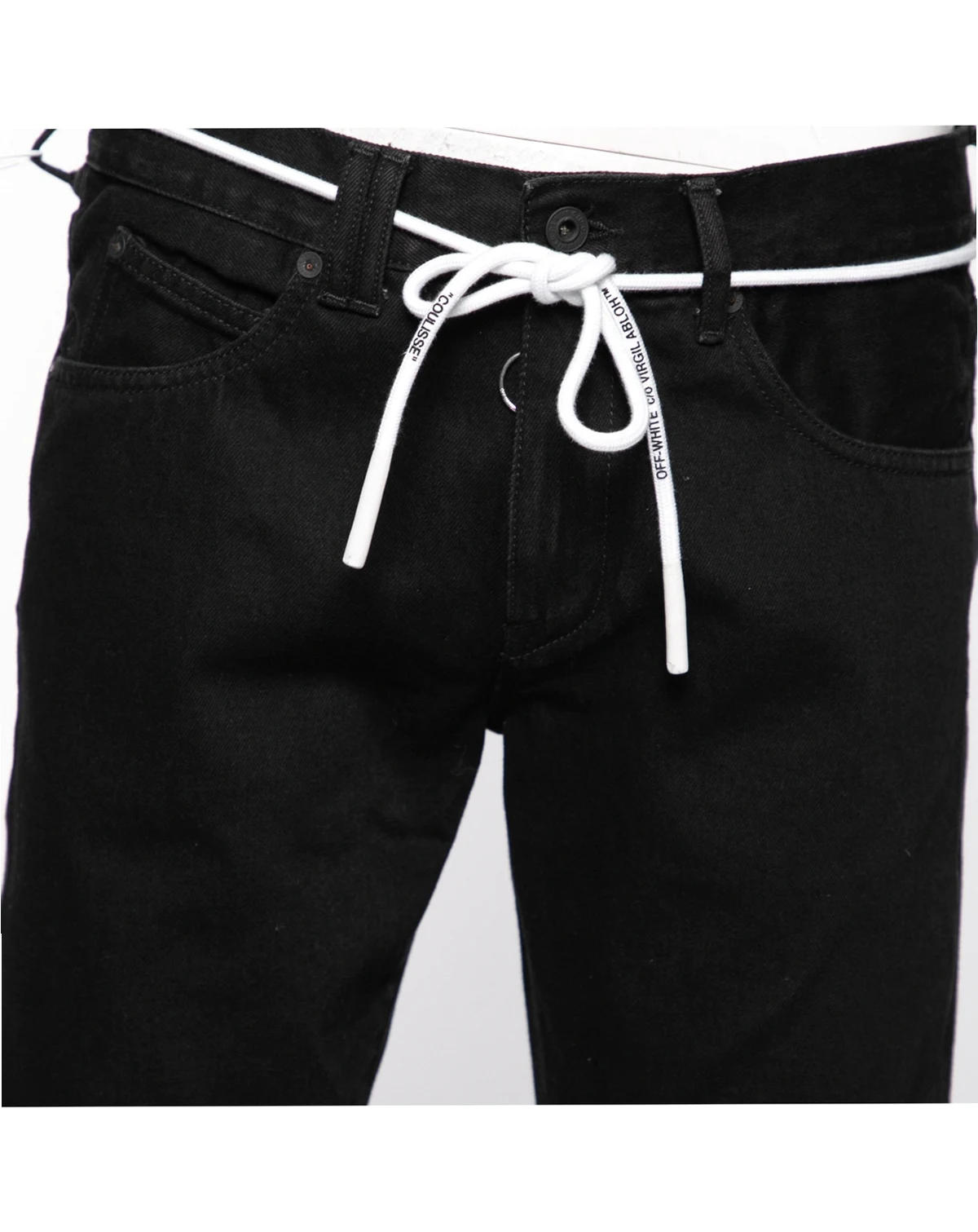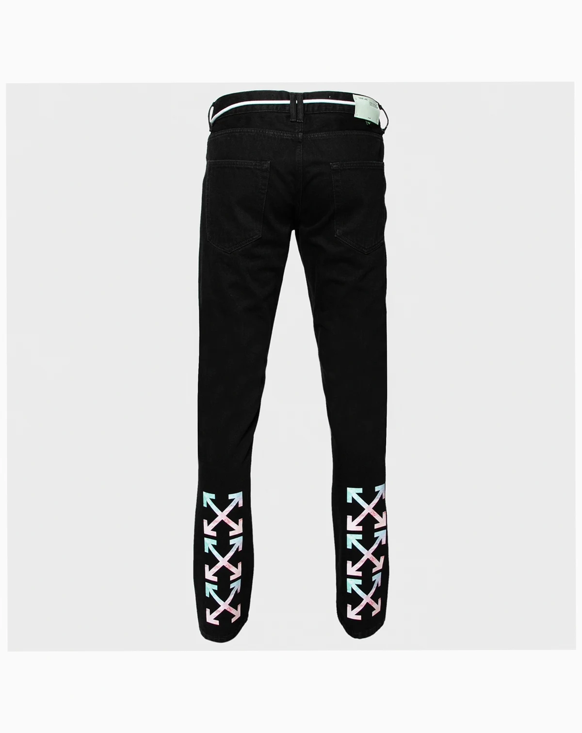 Be fashionable this season by flaunting this pair of jeans by Off White. Style this pair in a black hue with a t shirt and sneakers for a dapper look. Stand apart from the crowd by wearing this pair of arrow printed jeans designed with a drawstring on the waistline.
