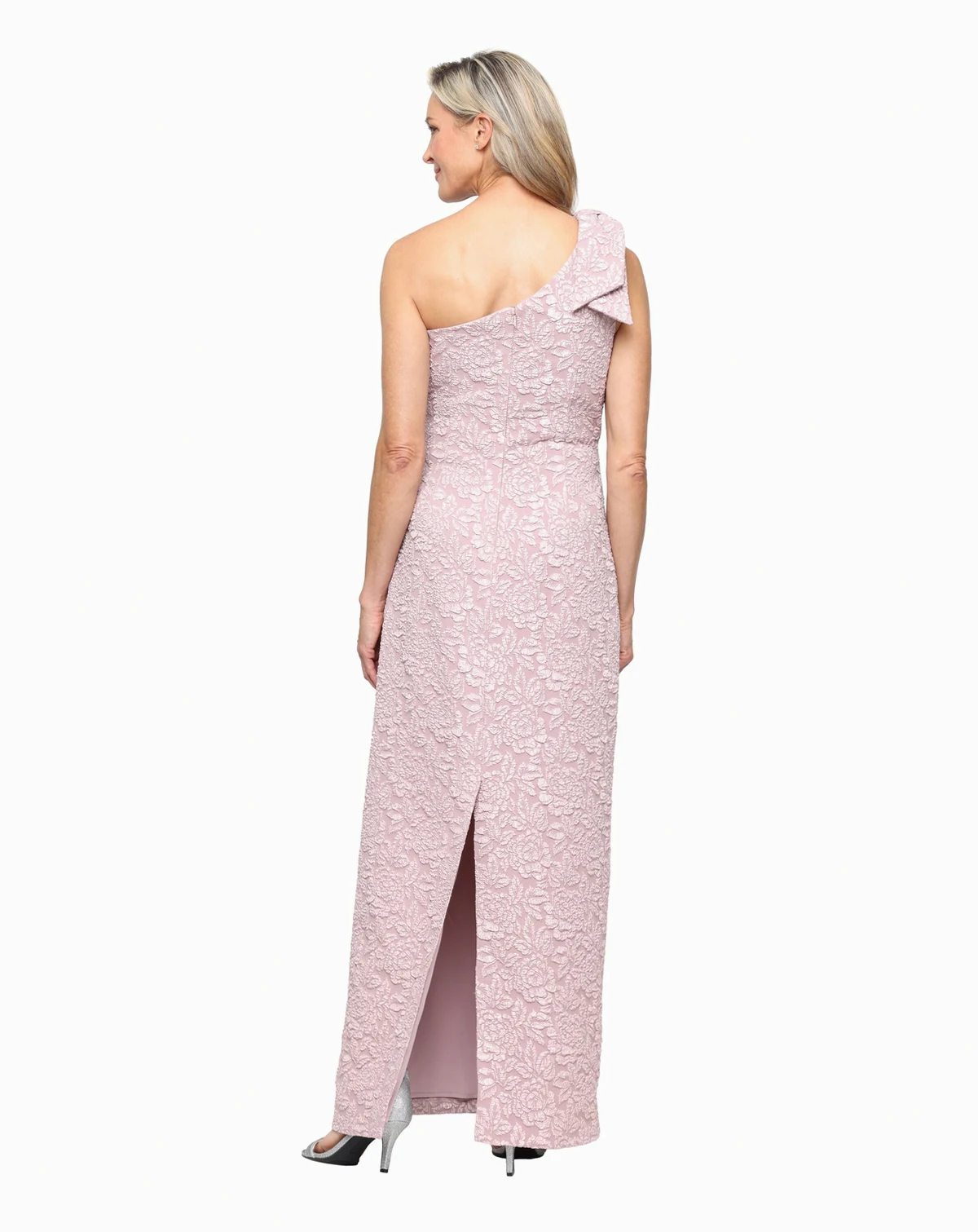 Elegant and striking, this Alex Evenings ball gown features a one-shoulder, sleeveless cut for a dramatic silhouette. A back zipper closure ensures a secure fit, making it a sophisticated choice for the mother of the bride or groom.
