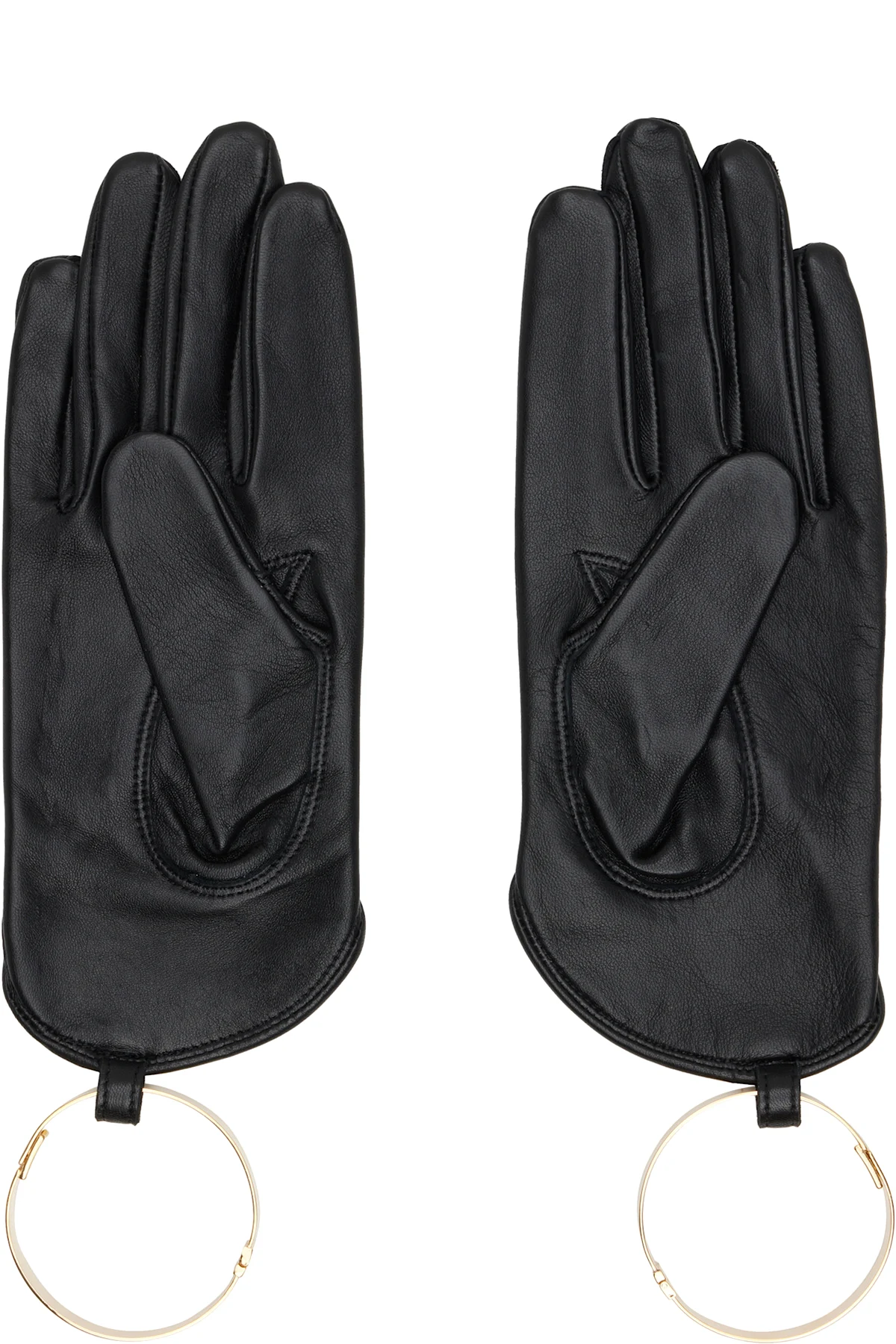 Pair of grained lambskin gloves. Detachable hinged bracelet in gold-tone brass.