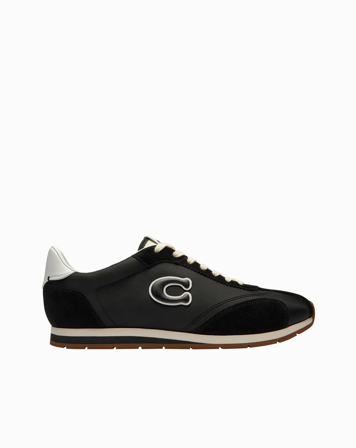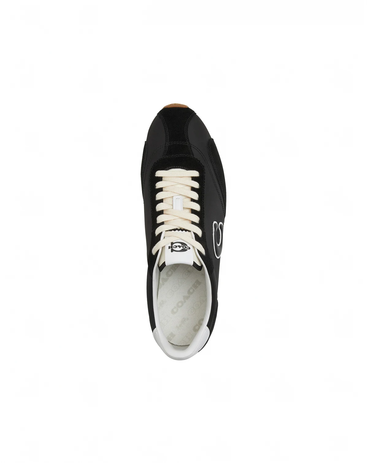 A streamlined on-the-go sneaker, this soft suede and canvas design features tonal stitching and laces. Accented with our perforated Signature, the sleek flat silhouette is finished with a lightweight Ethylene-vinyl acetate rubber outsole.