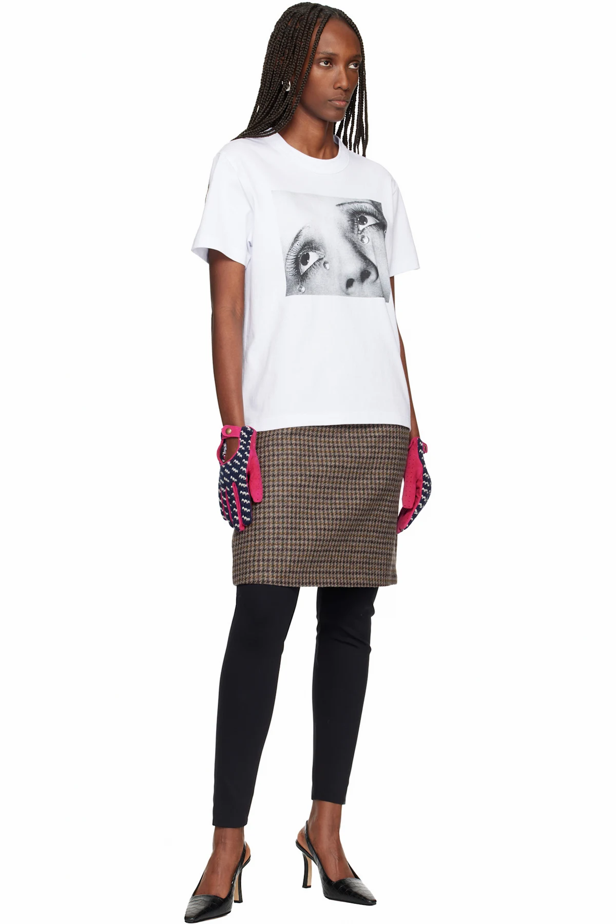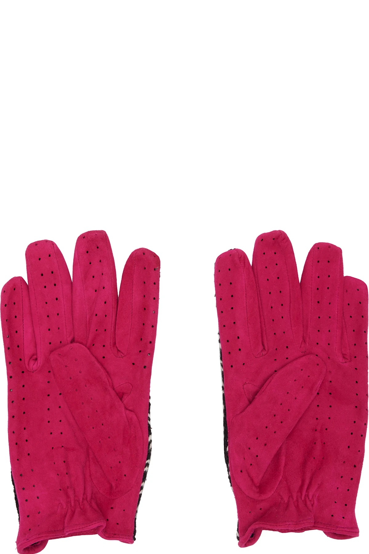 Paneled perforated suede and upcycled knit wool gloves.