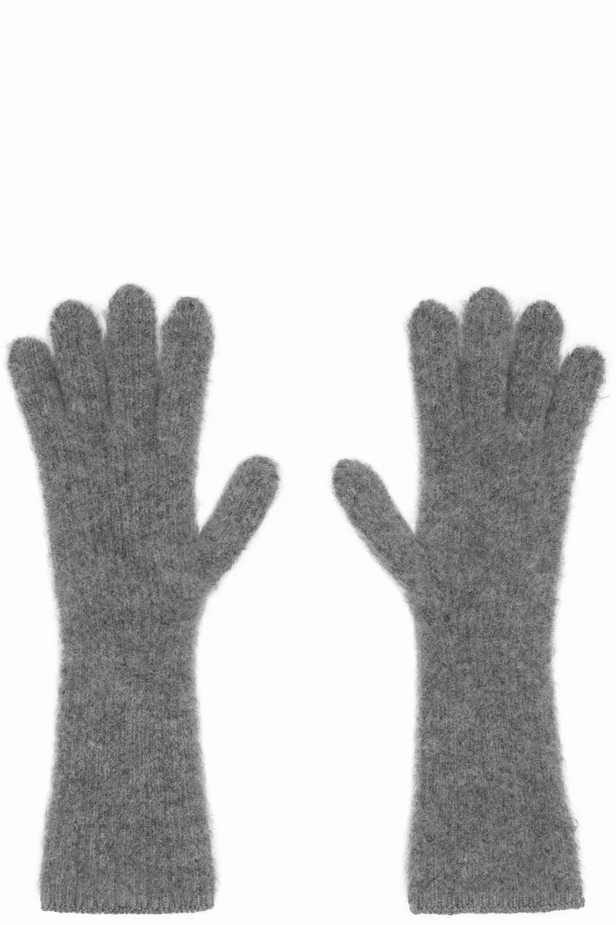 Pair of brushed rib-knit alpaca- and wool-blend gloves. Logo patch at cuffs.