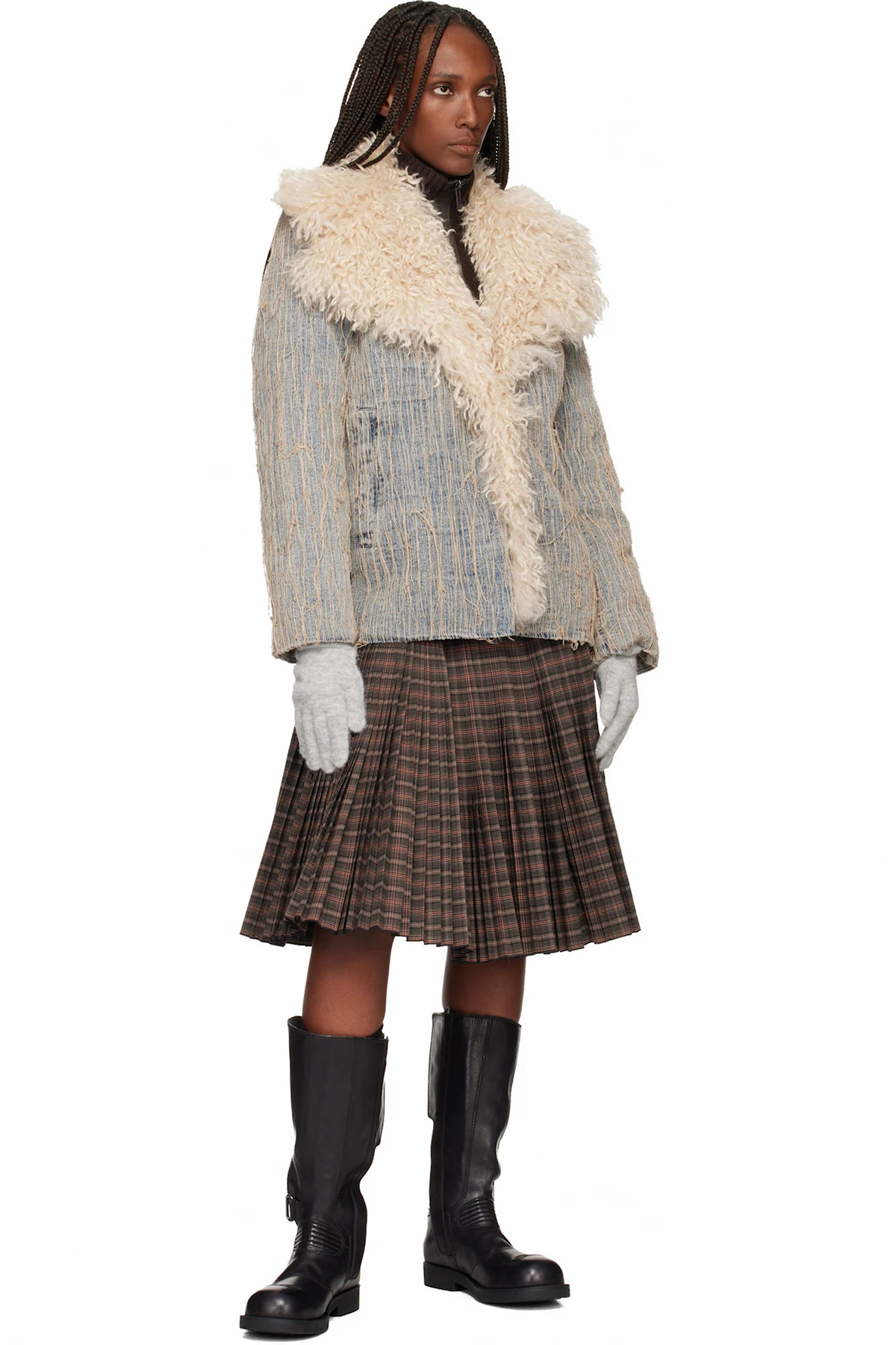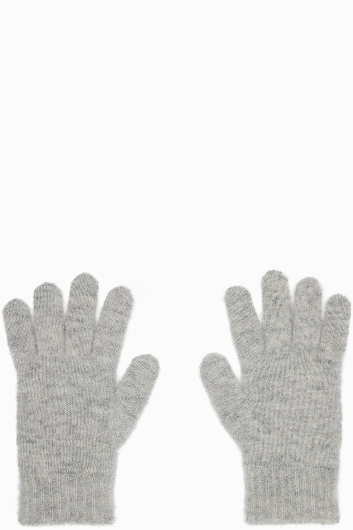 Pair of brushed knit alpaca- and mohair-blend gloves.
