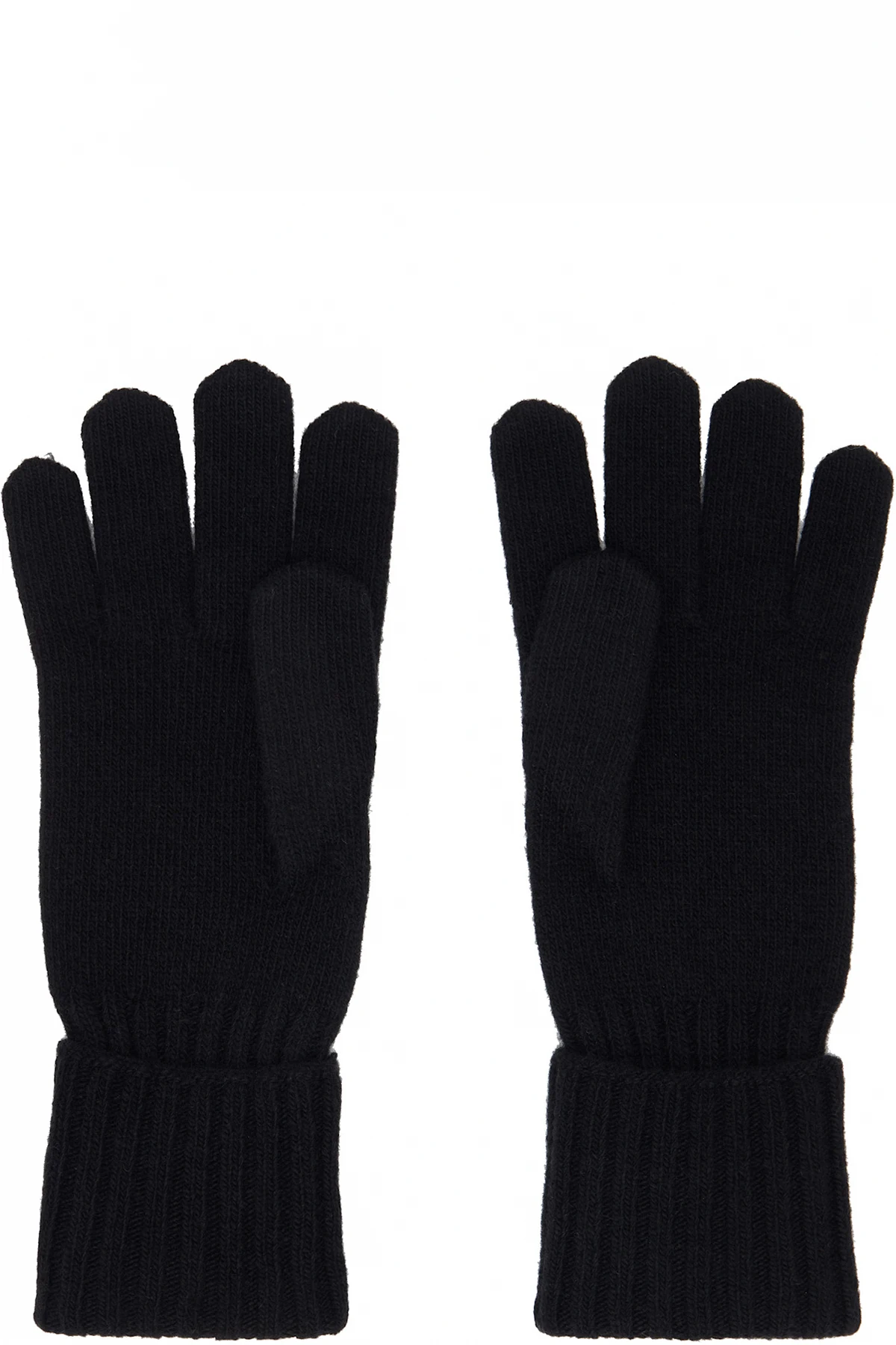 Black Wool-Blend Knit Gloves
