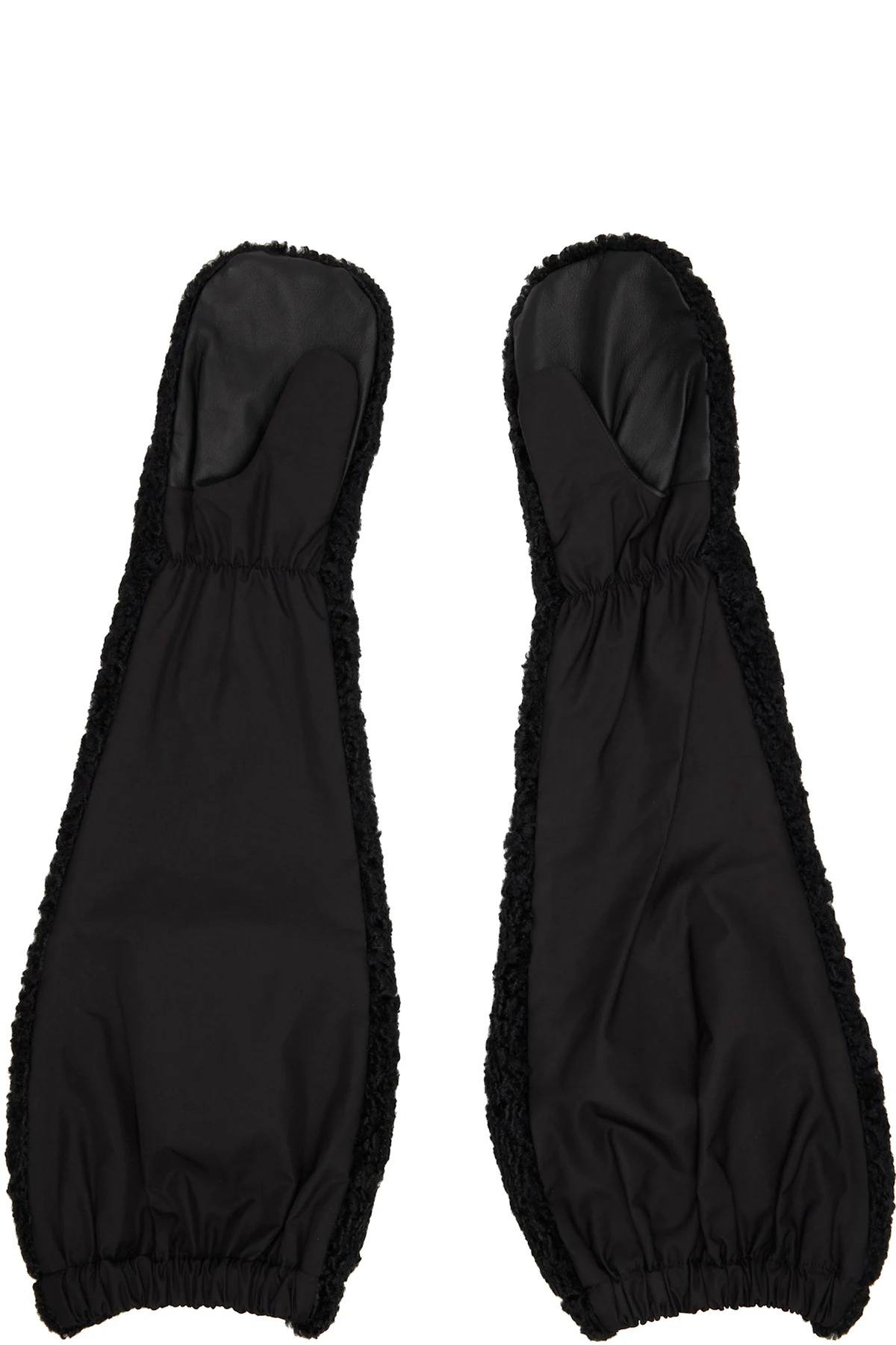 Paneled wool-blend bouclé, taffeta, and leather mitts.