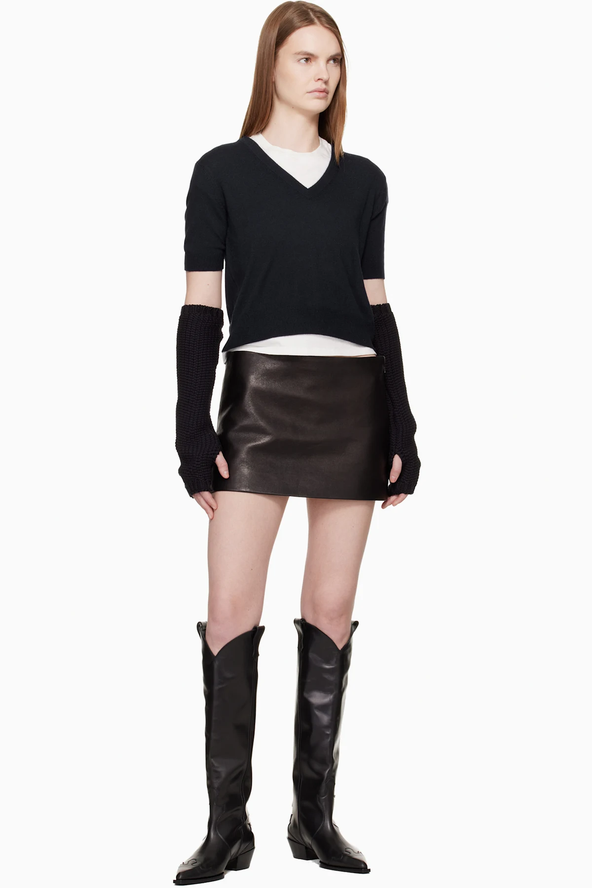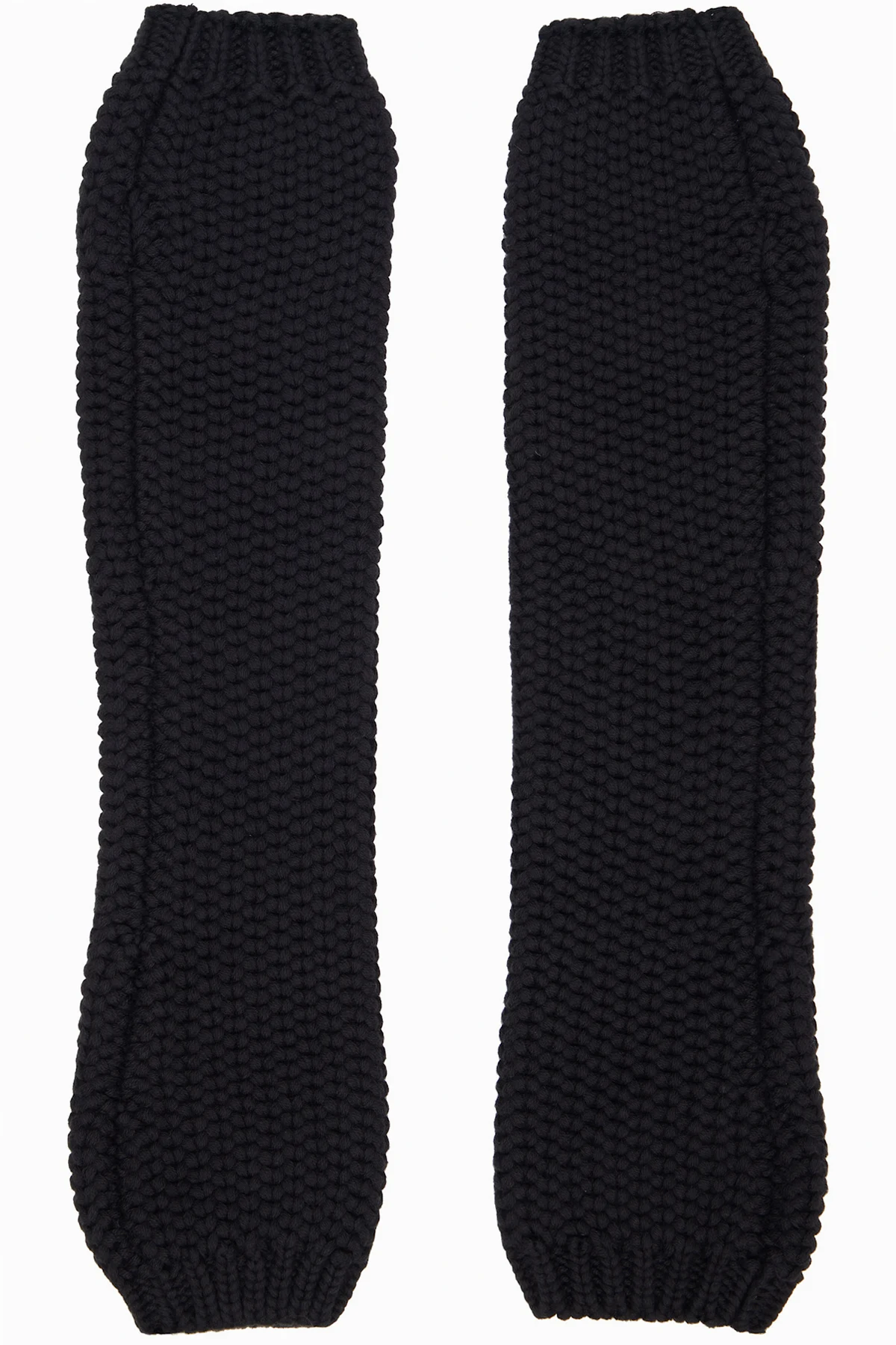 Pair of knit cotton fingerless gloves. Rib-knit cuffs.