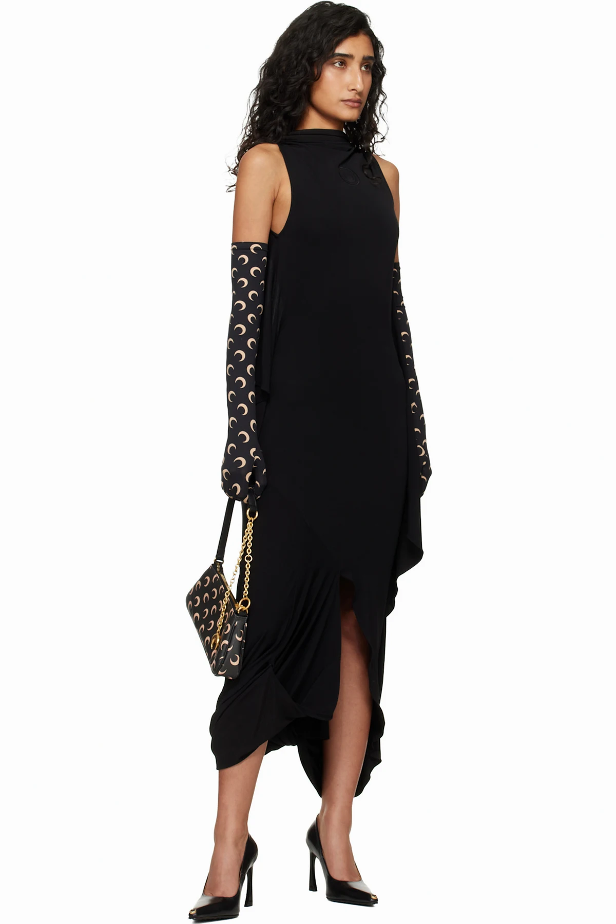 Black Recycled Moon Jersey Long Gloves