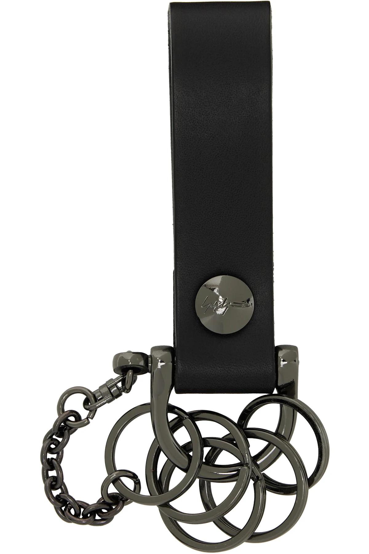 Keychain in gunmetal tone.