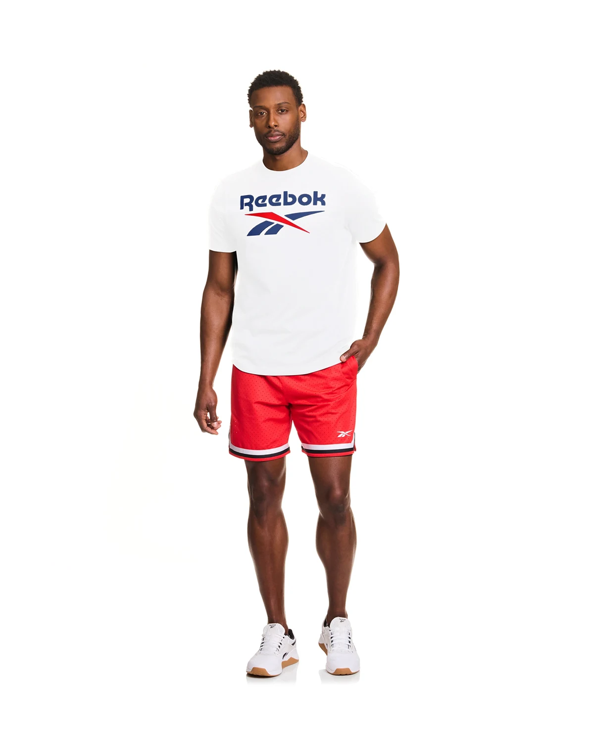 The iconic Reebok logo is printed boldly across the chest of this all-cotton crewneck T-shirt, giving you a look that's ready to hit the court or the street at a moment's notice.