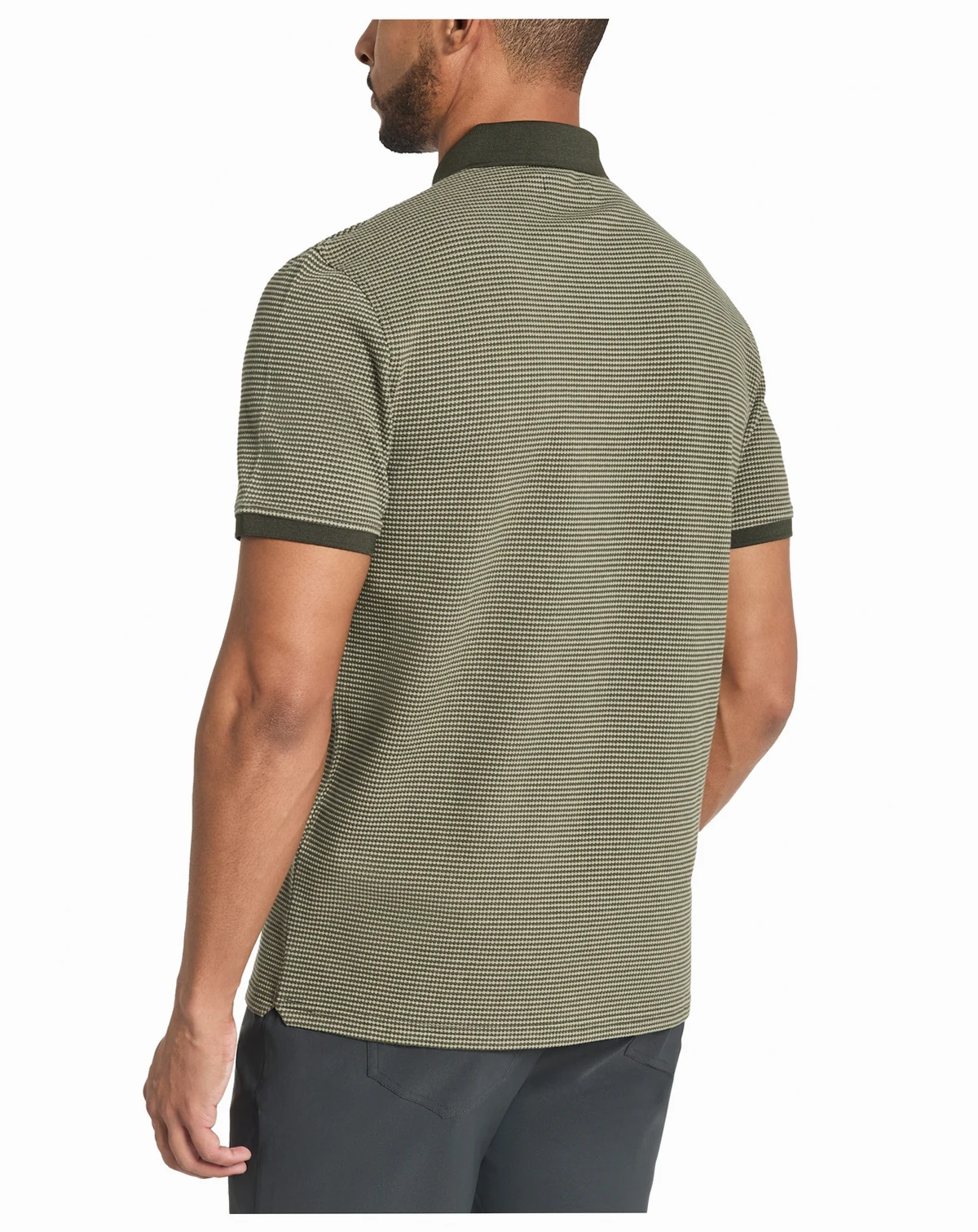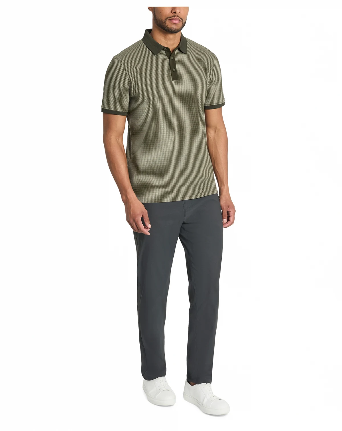 Marrying smart and casual style, Kenneth Cole's short-sleeve polo effortlessly elevates your wardrobe. Cut from breathable cotton-knit with built-in stretch for flexible comfort, this updated classic has a contrast button placket and ribbed trims that give your everyday look a hint of tailoring for casual or formal dressing.