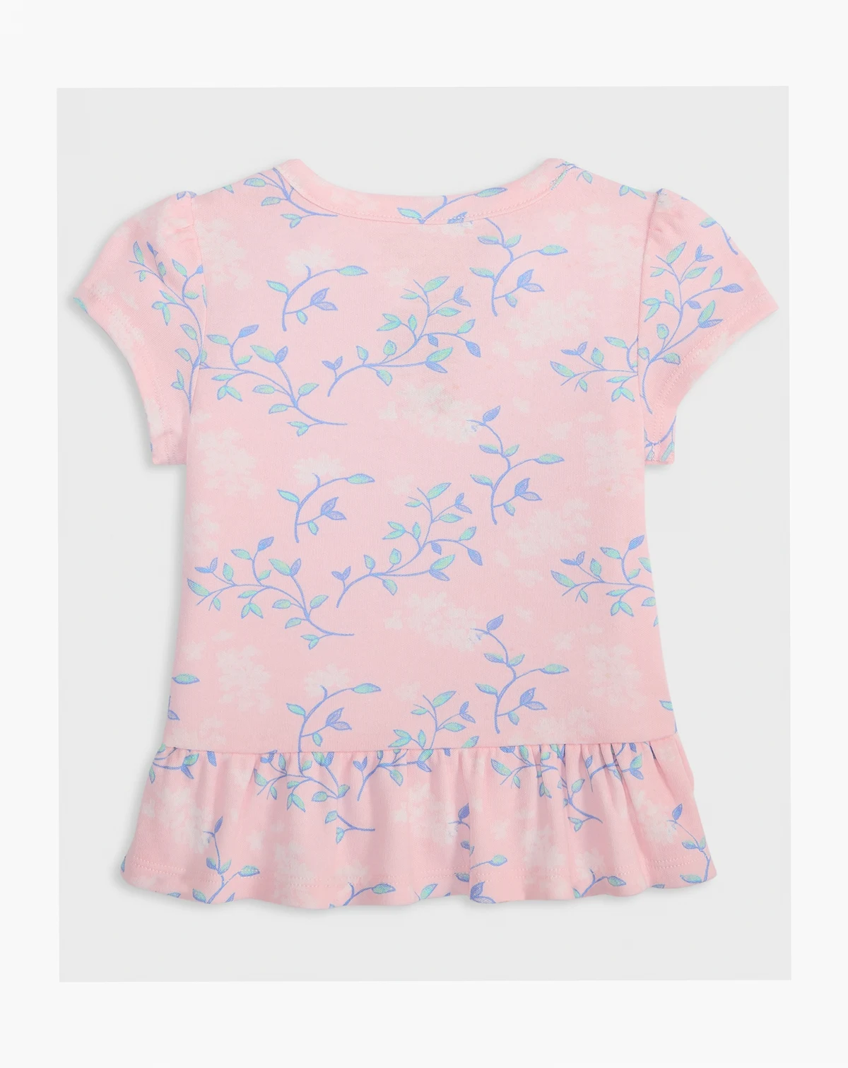 Adorable in a soft floral print, this First Impressions top dresses up her T-shirt look with a ruffled peplum hem.