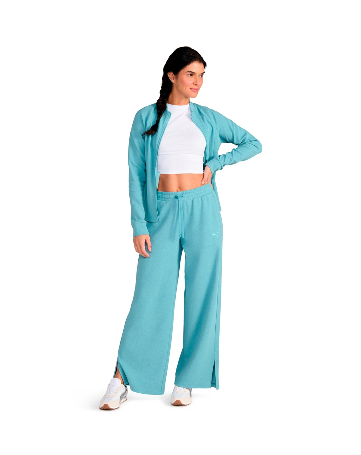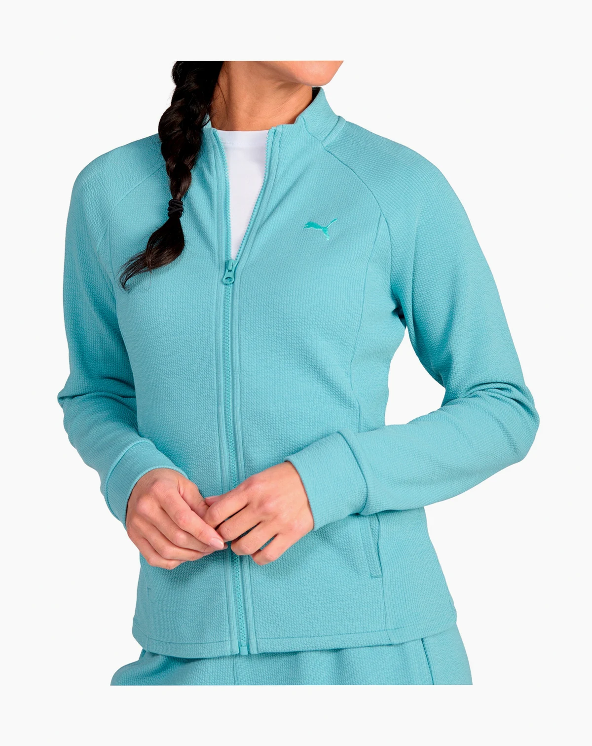 Layer with style in this textured knit full-zip jacket from Puma, featuring on-seam pockets for storage. A slim fit and embroidered chest cat provide a sleek, casual look.