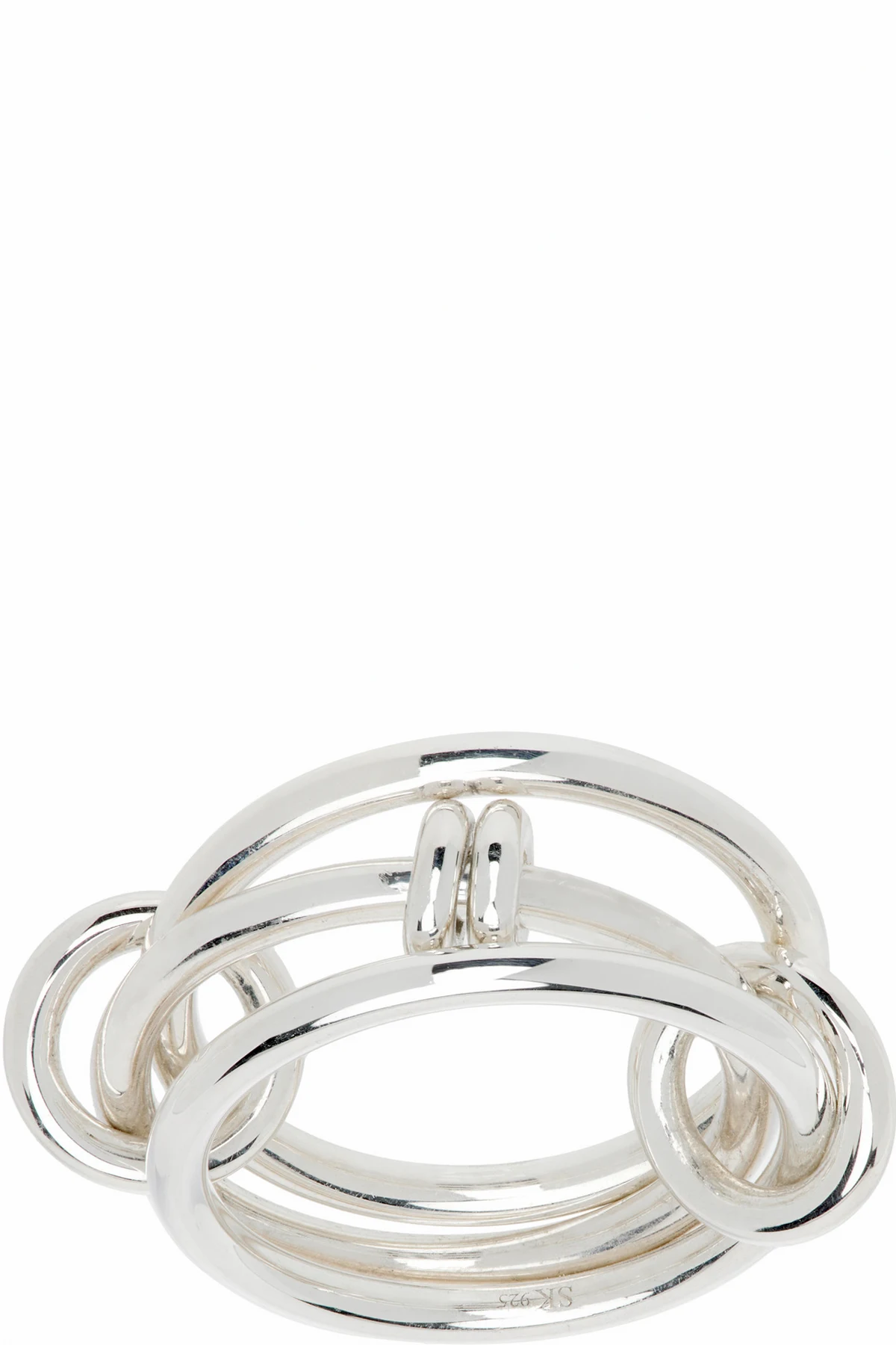 Connected and stacked band rings in sterling silver.